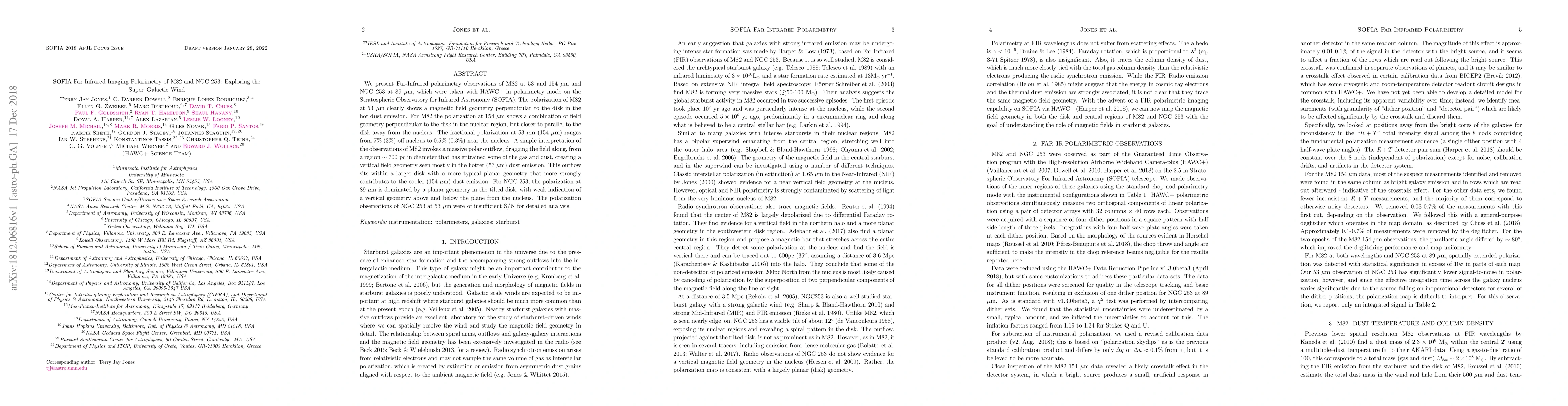 This study uses SOFIA's HAWC+ to conduct Far-Infrared polarimetry of M82 and NGC 253, revealing a magnetic field geometry in M82's hot dust emission perpendicular to the disk, suggesting a massive polar outflow. NGC 253 shows polarization dominated by a planar geometry in its tilted disk.