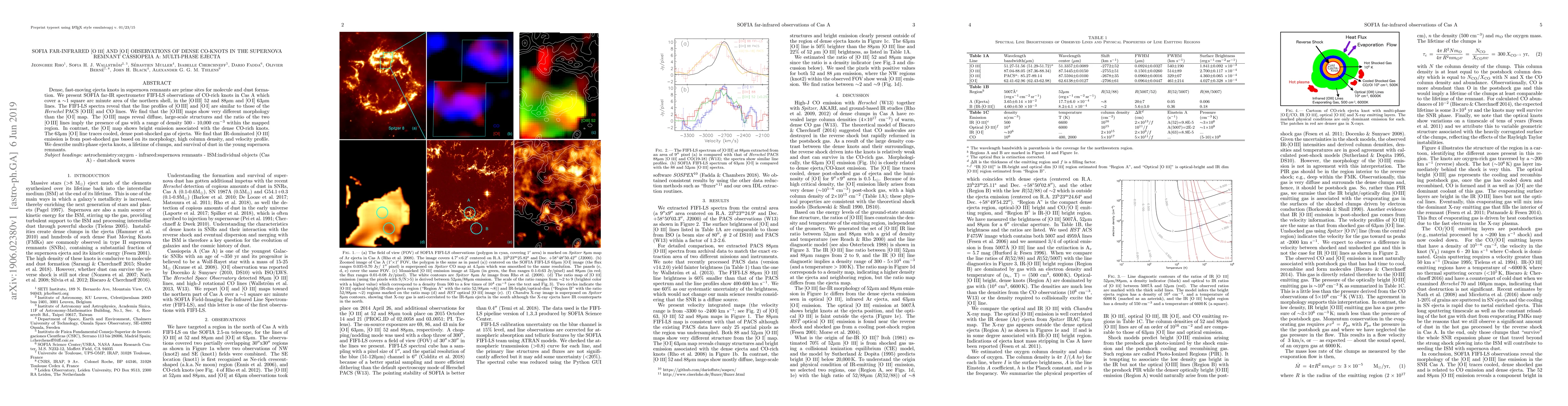 Dense, fast-moving ejecta knots in supernova remnants are prime sites for molecule and dust formation. We present SOFIA far-IR spectrometer FIFI-LS observations of CO-rich knots in Cas A which cover a ~1 square arc minute area of the northern shell, in the [O III] 52 and 88 micron and [O I] 63 micron lines. The FIFI-LS spectra reveal that the line profiles of [O III] and [O I] are similar to those of the Herschel PACS [O III] and CO lines. We find that the [O III] maps show very different morphology than the [O I] map. The [O III] maps reveal diffuse, large-scale structures and the ratio of the two [O III] lines imply the presence of gas with a range of density 500 - 10,000 per cm^3 within the mapped region. In contrast, the [O I] map shows bright emission associated with the dense CO-rich knots. The 63 micron [O I] line traces cooled, dense post-shocked gas of ejecta. We find that IR-dominated [O III] emission is from post-shocked gas based on its morphology, high column density, and velocity profile. We describe multi-phase ejecta knots, a lifetime of clumps, and survival of dust in the young supernova remnants.