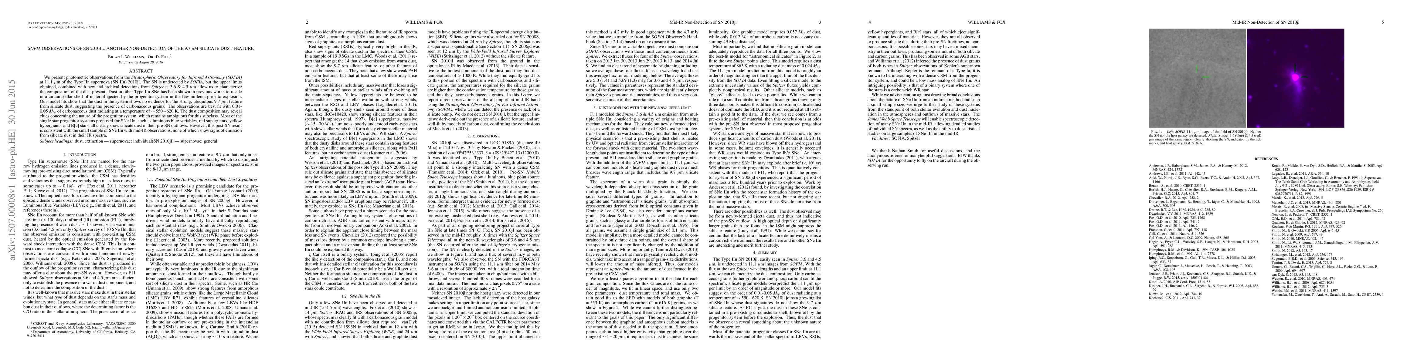 Astronomers used SOFIA to observe Type IIn supernova SN 2010jl and found no evidence of silicate dust, instead suggesting the presence of carbonaceous grains.