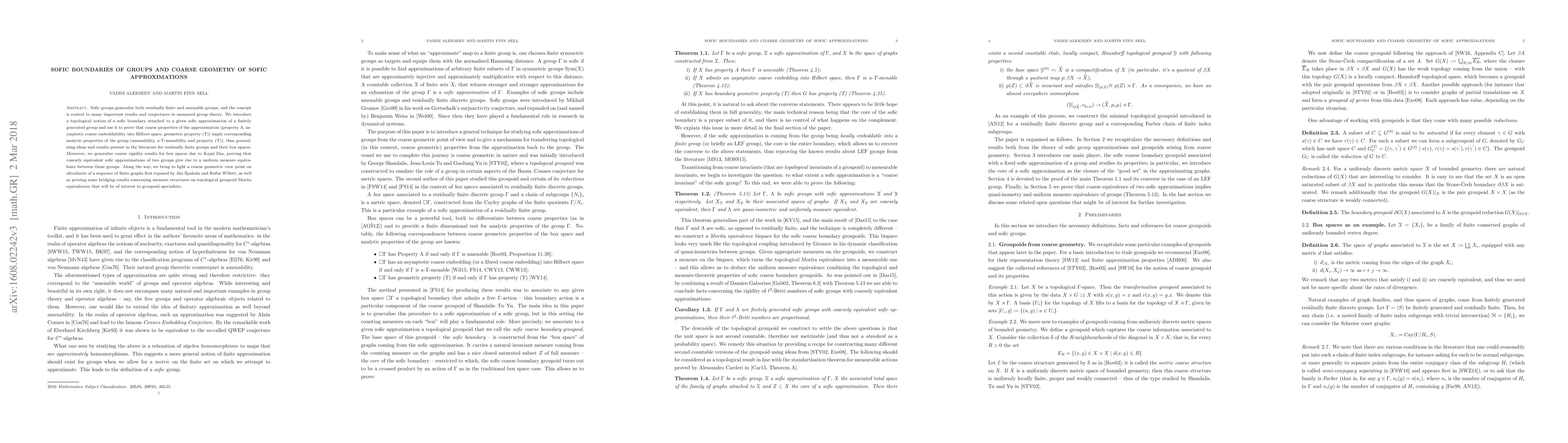 Sofic groups generalise both residually finite and amenable groups, and the concept is central to many important results and conjectures in measured group theory. We introduce a topological notion of a sofic boundary attached to a given sofic approximation of a finitely generated group and use it to prove that coarse properties of the approximation (property A, asymptotic coarse embeddability into Hilbert space, geometric property (T)) imply corresponding analytic properties of the group (amenability, a-T-menability and property (T)), thus generalising ideas and results present in the literature for residually finite groups and their box spaces. Moreover, we generalise coarse rigidity results for box spaces due to Kajal Das, proving that coarsely equivalent sofic approximations of two groups give rise to a uniform measure equivalence between those groups. Along the way, we bring to light a coarse geometric view point on ultralimits of a sequence of finite graphs first exposed by Jan \v{S}pakula and Rufus Willett, as well as proving some bridging results concerning measure structures on topological groupoid Morita equivalences that will be of interest to groupoid specialists.
