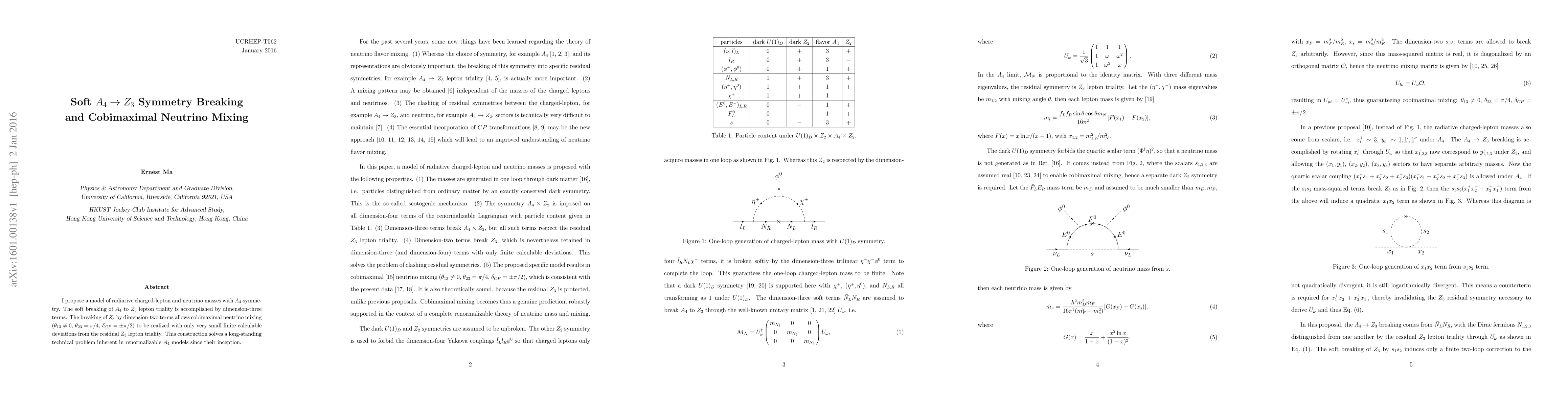 Researchers propose a model that resolves a long-standing issue in $A_4$ models of neutrino mass generation through soft symmetry breaking to $Z_3$, enabling cobimaximal neutrino mixing with small deviations from residual lepton triality.