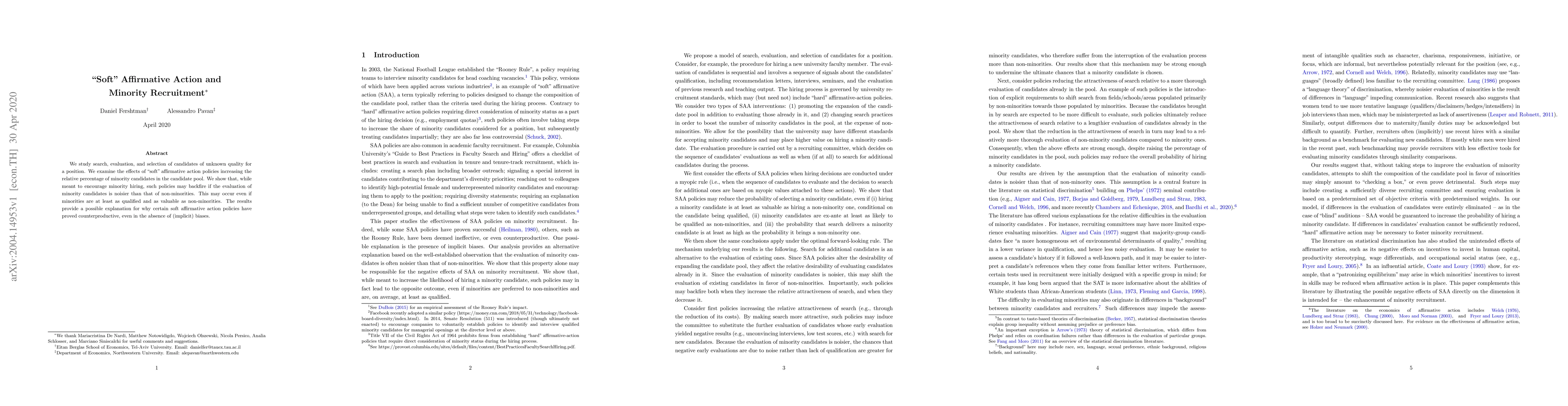 This paper investigates the unintended consequences of "soft" affirmative action policies aimed at increasing minority recruitment, finding that noisier evaluations of minority candidates can backfire, potentially leading to counterproductive outcomes despite equal qualifications. The study highlights the importance of accurate evaluation processes in minority hiring.