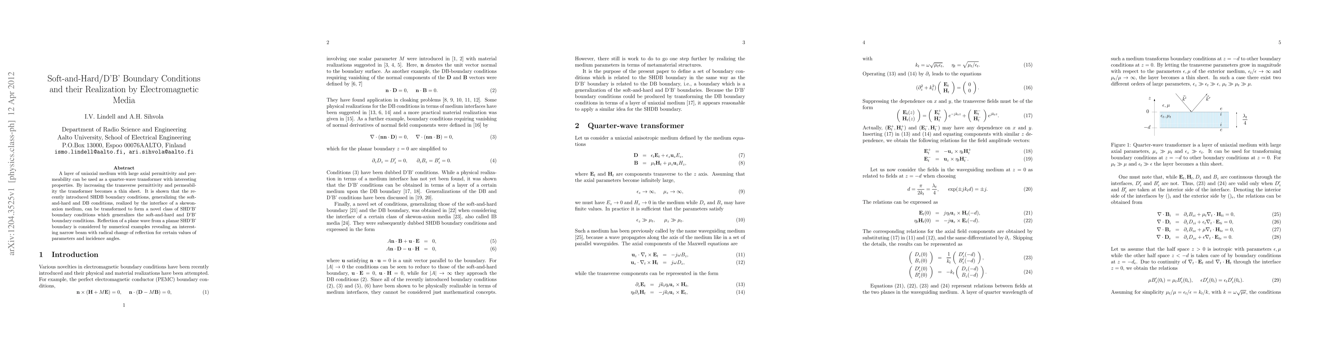 A layer of uniaxial medium with large axial permittivity and permeability can be used as a quarter-wave transformer with interesting properties. By increasing the transverse permittivity and permeability the transformer becomes a thin sheet. It is shown that the recently introduced SHDB boundary conditions, generalizing the soft-and-hard and DB conditions, realized by the interface of a skewon-axion medium, can be transformed to form a novel class of SHD'B' boundary conditions which generalizes the soft-and-hard and D'B' boundary conditions. Reflection of a plane wave from a planar SHD'B' boundary is considered by numerical examples revealing an interesting narrow beam with radical change of reflection for certain values of parameters and incidence angles.