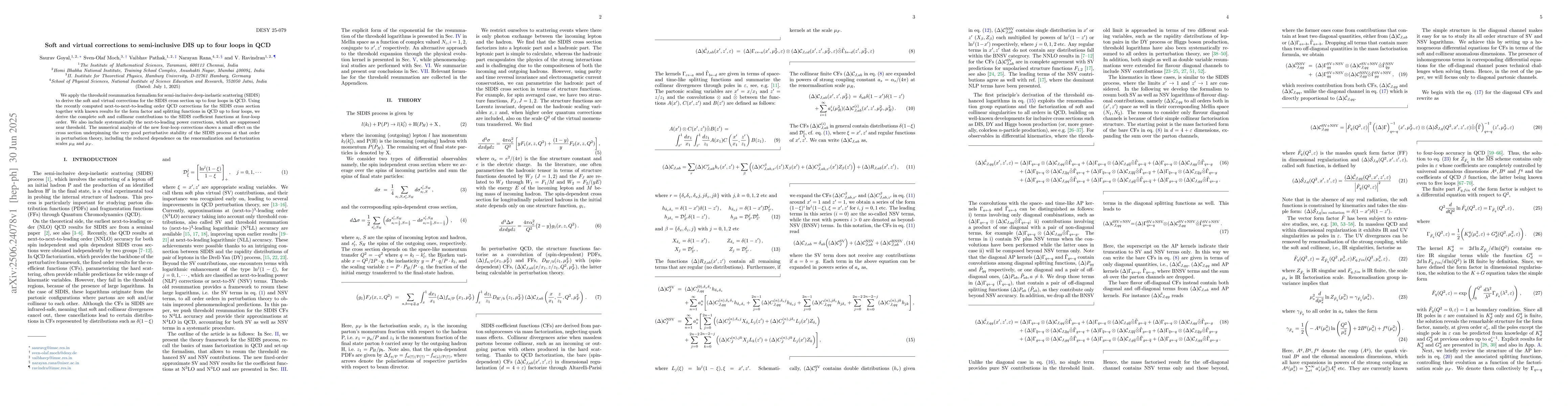 We apply the threshold resummation formalism for semi-inclusive deep-inelastic scattering (SIDIS) to derive the soft and virtual corrections for the SIDIS cross section up to four loops in QCD. Using the recently computed next-to-next-to-leading order QCD corrections for the SIDIS cross section together with known results for the form factor and splitting functions in QCD up to four loops, we derive the complete soft and collinear contributions to the SIDIS coefficient functions at four-loop order. We also include systematically the next-to-leading power corrections, which are suppressed near threshold. The numerical analysis of the new four-loop corrections shows a small effect on the cross section underpinning the very good perturbative stability of the SIDIS process at that order in perturbation theory, including the reduced dependence on the renormalization and factorization scales $\mu_R$ and $\mu_F$.