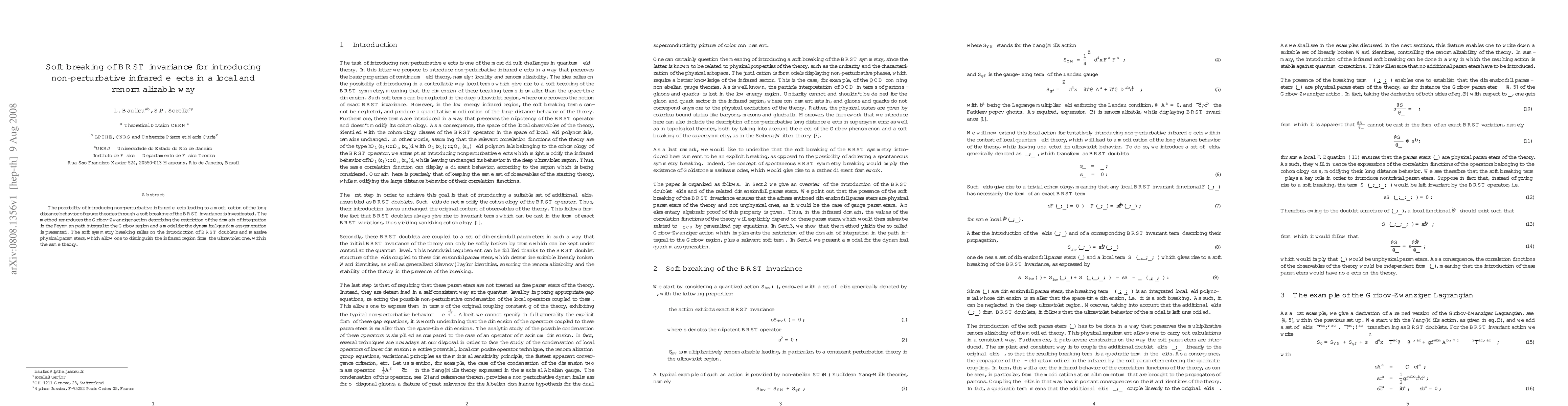This paper explores a soft breaking of BRST invariance to introduce non-perturbative infrared effects in gauge theories, leading to a modified long-distance behavior. The method reproduces the Gribov-Zwanziger action and presents a model for dynamical quark mass generation using BRST doublets and massive physical parameters.