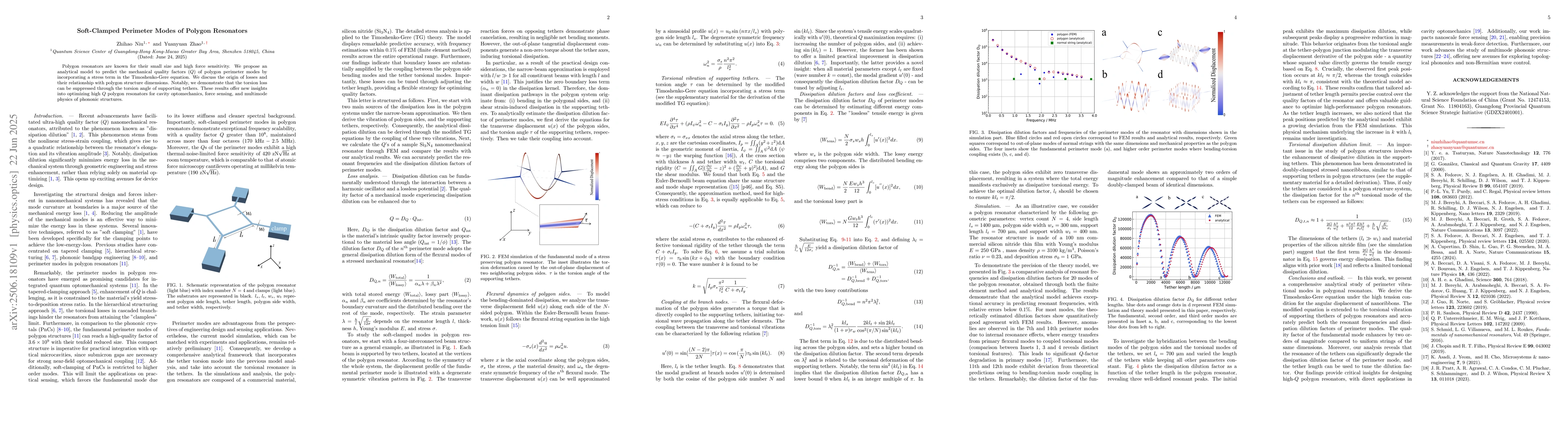 Polygon resonators are known for their small size and high force sensitivity. We propose an analytical model to predict the mechanical quality factors (Q) of polygon perimeter modes by incorporating a stress term in the Timoshenko-Gere equation. We discuss the origin of losses and their relationship with polygon structure dimensions. Notably, we demonstrate that the torsion loss can be suppressed through the torsion angle of supporting tethers. These results offer new insights into optimizing high Q polygon resonators for cavity optomechanics, force sensing, and multimode physics of phononic structures.