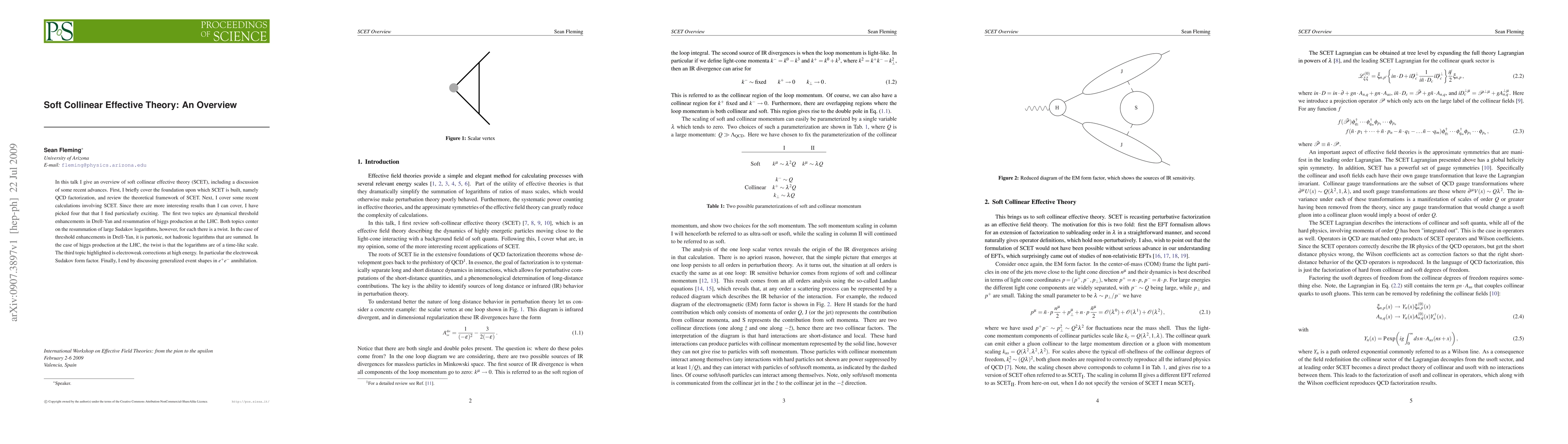In this talk I give an overview of soft collinear effective theory (SCET), including a discussion of some recent advances. First, I briefly cover the foundation upon which SCET is built, namely QCD factorization, and review the theoretical framework of SCET. Next, I cover some recent calculations involving SCET. Since there are more interesting results than I can cover, I have picked four that that I find particularly exciting. The first two topics are dynamical threshold enhancements in Drell-Yan and resummation of higgs production at the LHC. Both topics center on the resummation of large Sudakov logarithms, however, for each there is a twist. In the case of threshold enhancements in Drell-Yan, it is partonic, not hadronic logarithms that are summed. In the case of higgs production at the LHC, the twist is that the logarithms are of a time-like scale. The third topic highlighted is electroweak corrections at high energy. In particular the electroweak Sudakov form factor. Finally, I end by discussing generalized event shapes in $e^+e^-$ annihilation.