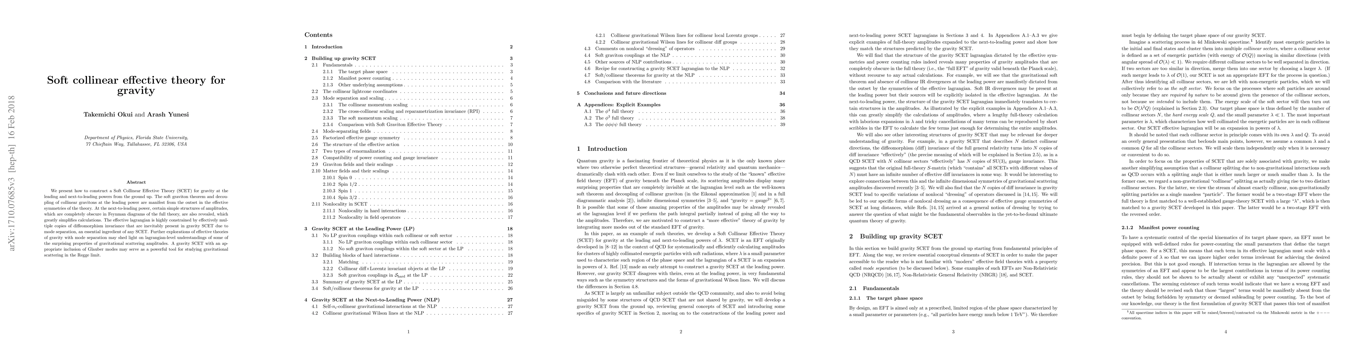 We present how to construct a Soft Collinear Effective Theory (SCET) for gravity at the leading and next-to-leading powers from the ground up. The soft graviton theorem and decoupling of collinear gravitons at the leading power are manifest from the outset in the effective symmetries of the theory. At the next-to-leading power, certain simple structures of amplitudes, which are completely obscure in Feynman diagrams of the full theory, are also revealed, which greatly simplifies calculations. The effective lagrangian is highly constrained by effectively multiple copies of diffeomorphism invariance that are inevitably present in gravity SCET due to mode separation, an essential ingredient of any SCET. Further explorations of effective theories of gravity with mode separation may shed light on lagrangian-level understandings of some of the surprising properties of gravitational scattering amplitudes. A gravity SCET with an appropriate inclusion of Glauber modes may serve as a powerful tool for studying gravitational scattering in the Regge limit.