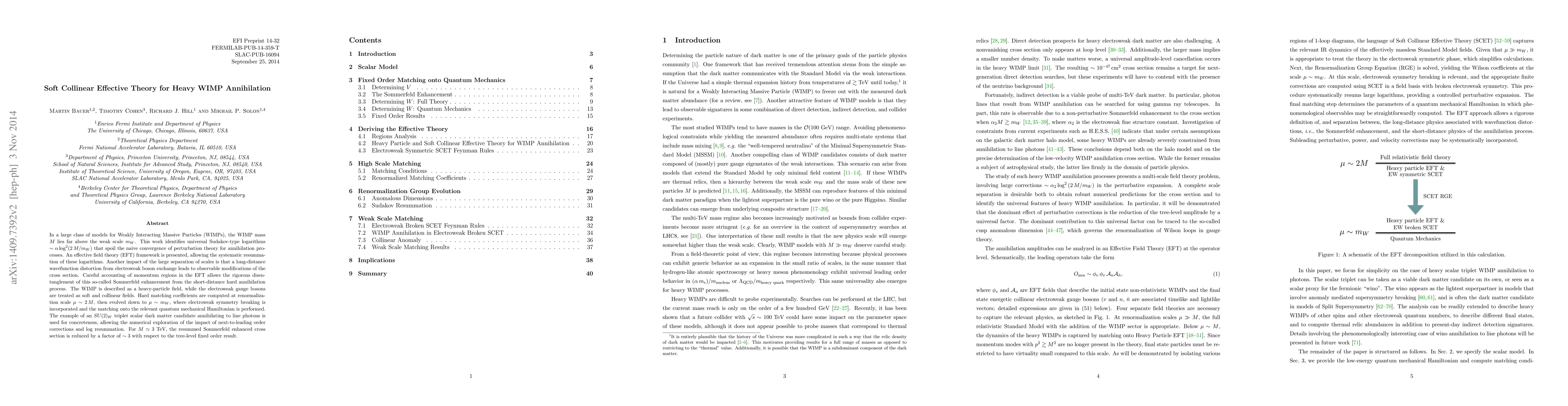 In a large class of models for Weakly Interacting Massive Particles (WIMPs), the WIMP mass $M$ lies far above the weak scale $m_W$. This work identifies universal Sudakov-type logarithms $\sim \alpha \log^2 (2\,M/m_W)$ that spoil the naive convergence of perturbation theory for annihilation processes. An effective field theory (EFT) framework is presented, allowing the systematic resummation of these logarithms. Another impact of the large separation of scales is that a long-distance wave-function distortion from electroweak boson exchange leads to observable modifications of the cross section. Careful accounting of momentum regions in the EFT allows the rigorously disentanglement of this so-called Sommerfeld enhancement from the short distance hard annihilation process. The WIMP is modeled as a heavy-particle field, while the light, energetic, final-state electroweak gauge bosons are treated as soft and collinear fields. Hard matching coefficients are computed at renormalization scale $\mu \sim 2\,M$, then evolved down to $\mu \sim m_W$, where electroweak symmetry breaking is incorporated and the matching onto the relevant quantum mechanical Hamiltonian is performed. The example of an $SU(2)_W$ triplet scalar dark matter candidate annihilating to line photons is used for concreteness, allowing the numerical exploration of the impact of next-to-leading order corrections and log resummation. For $M \simeq 3$ TeV, the resummed Sommerfeld enhanced cross section is reduced by a factor of $\sim 3$ with respect to the tree-level fixed order result.