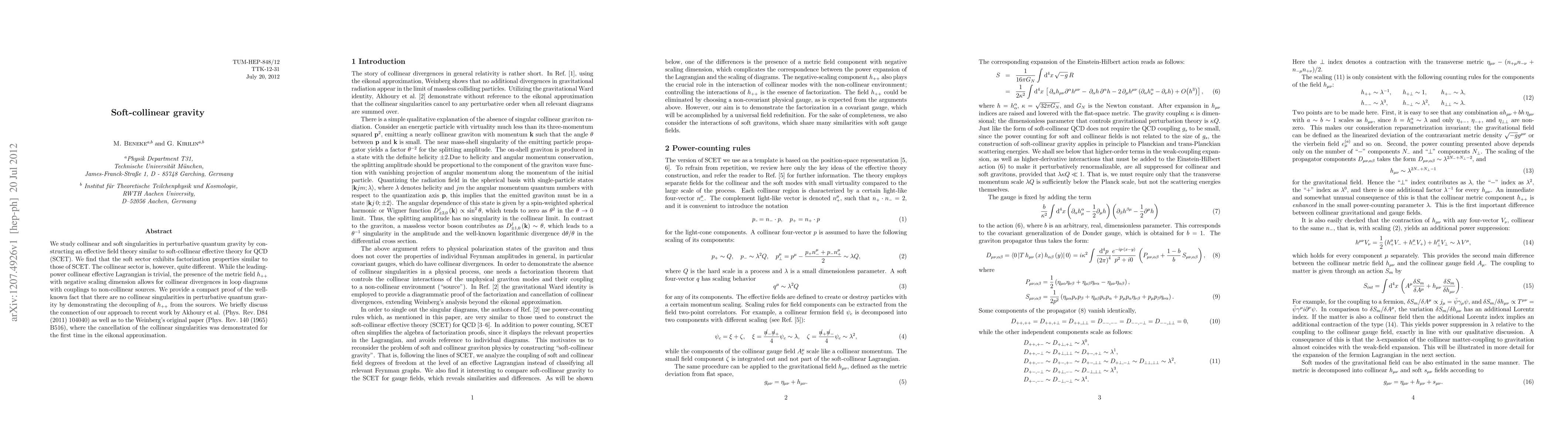 This paper constructs an effective field theory for perturbative quantum gravity, analogous to SCET for QCD, revealing factorization in the soft sector but distinct collinear dynamics. It proves the absence of collinear singularities, highlighting the decoupling of the metric field $h_{++}$, and connects its findings to earlier works on collinear singularity cancellation.