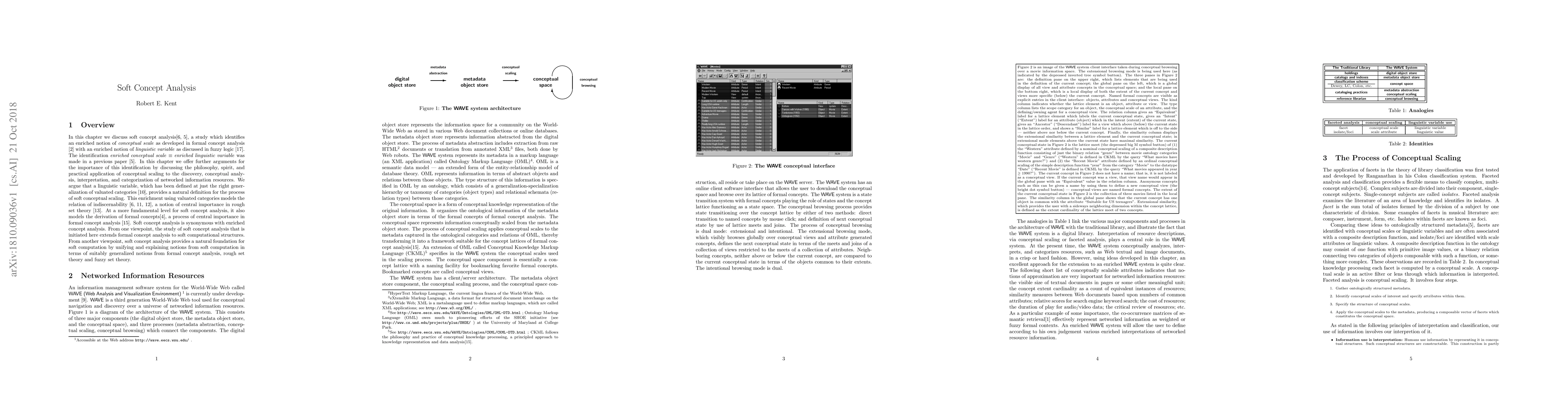 Soft concept analysis extends formal concept analysis by integrating enriched conceptual scales with linguistic variables from fuzzy logic, providing a unified framework for soft computation and the categorization of networked information resources. This approach models the relation of indiscernability and formalizes the derivation of concepts, enhancing the discovery and interpretation of data.