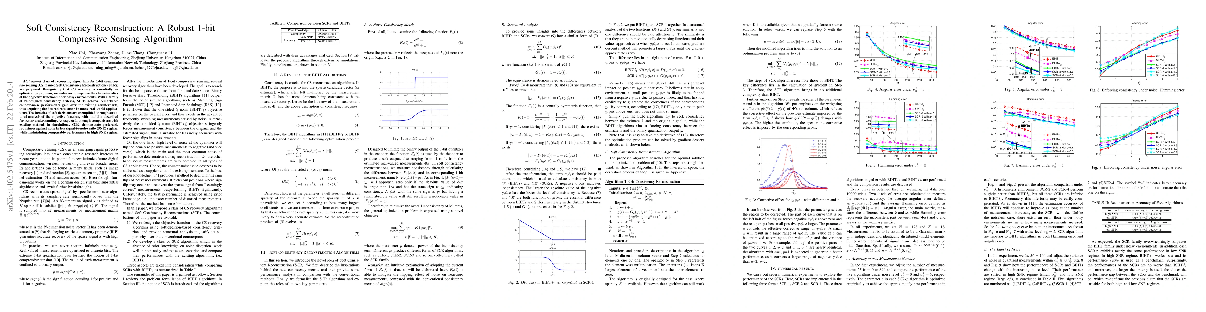 A class of recovering algorithms for 1-bit compressive sensing (CS) named Soft Consistency Reconstructions (SCRs) are proposed. Recognizing that CS recovery is essentially an optimization problem, we endeavor to improve the characteristics of the objective function under noisy environments. With a family of re-designed consistency criteria, SCRs achieve remarkable counter-noise performance gain over the existing counterparts, thus acquiring the desired robustness in many real-world applications. The benefits of soft decisions are exemplified through structural analysis of the objective function, with intuition described for better understanding. As expected, through comparisons with existing methods in simulations, SCRs demonstrate preferable robustness against noise in low signal-to-noise ratio (SNR) regime, while maintaining comparable performance in high SNR regime.