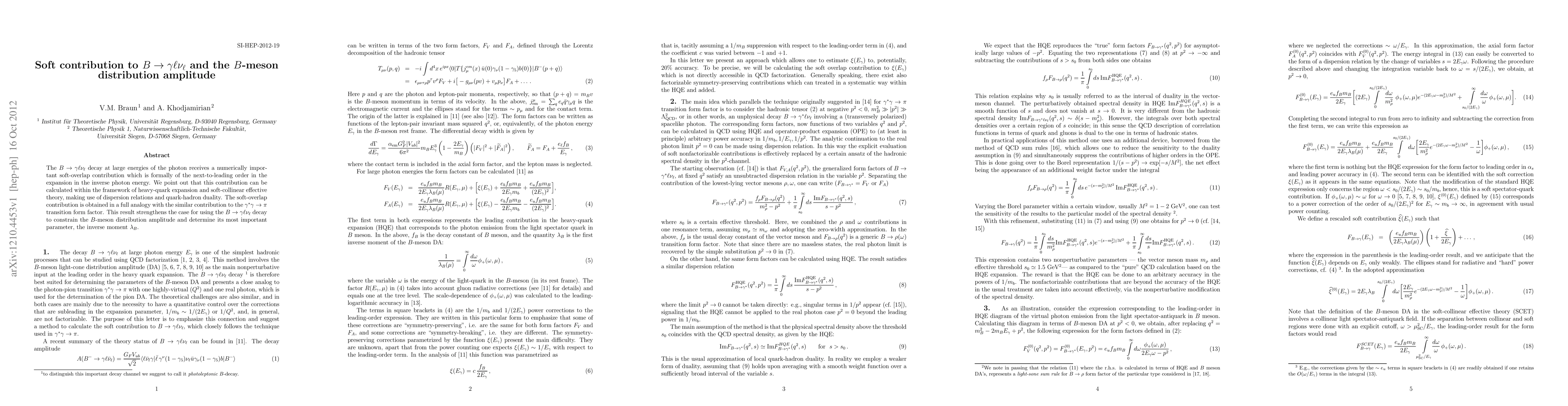 The $B\to \gamma \ell \nu_\ell$ decay at large energies of the photon receives a numerically important soft-overlap contribution which is formally of the next-to-leading order in the expansion in the inverse photon energy. We point out that this contribution can be calculated within the framework of heavy-quark expansion and soft-collinear effective theory, making use of dispersion relations and quark-hadron duality. The soft-overlap contribution is obtained in a full analogy with the similar contribution to the $\gamma^* \gamma \to \pi$ transition form factor. This result strengthens the case for using the $B\to \gamma \ell \nu_\ell$ decay to constrain the $B$-meson distribution amplitude and determine its most important parameter, the inverse moment $\lambda_B$.