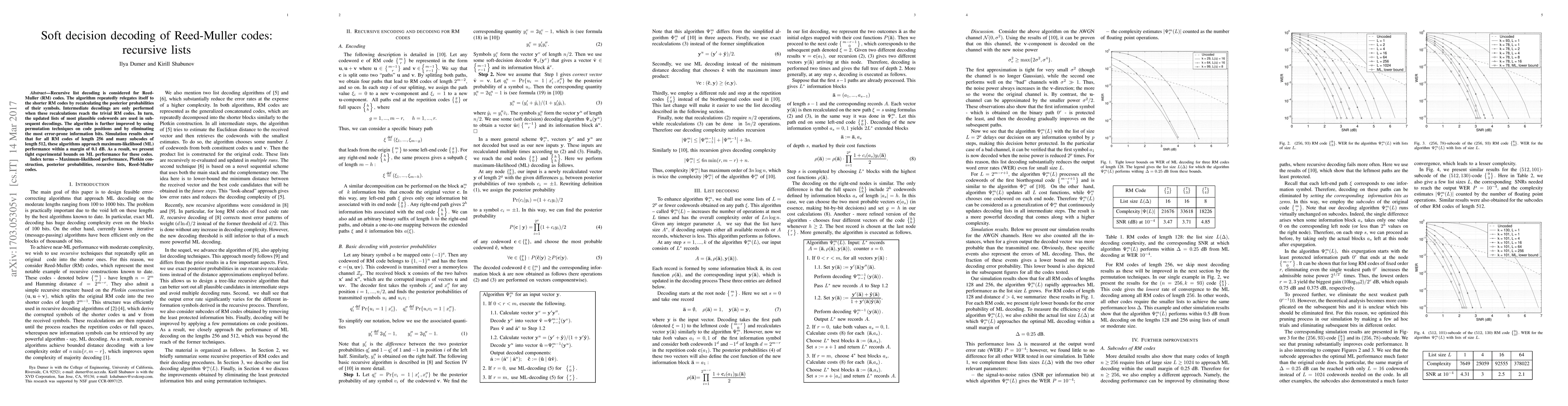 This paper proposes a recursive list decoding algorithm for Reed-Muller codes that iteratively refines posterior probabilities, achieving near maximum-likelihood performance for codes up to length 512, with an improvement margin of 0.1 dB, and employs permutation techniques and selective bit elimination for enhanced efficiency.