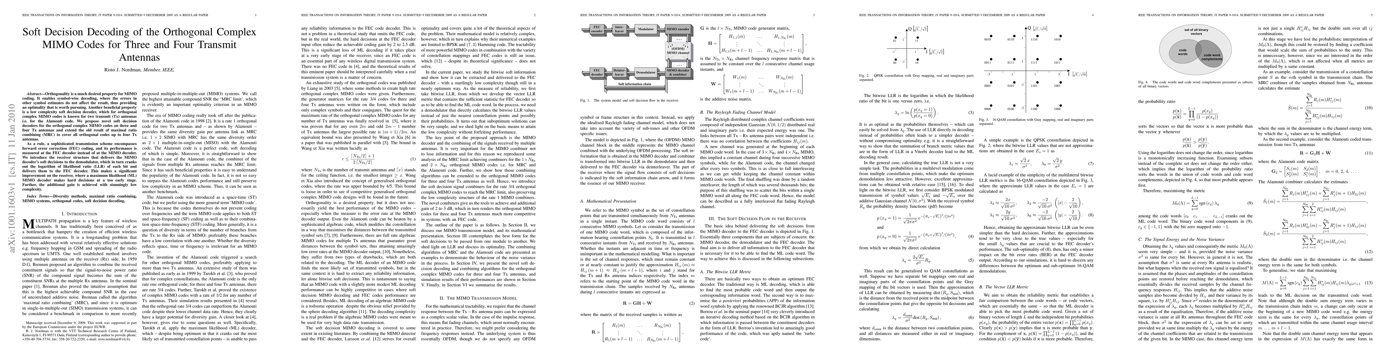 Researchers developed new soft decision decoders for orthogonal complex MIMO codes with three and four transmit antennas, improving receiver performance and complexity while maintaining low error rates.