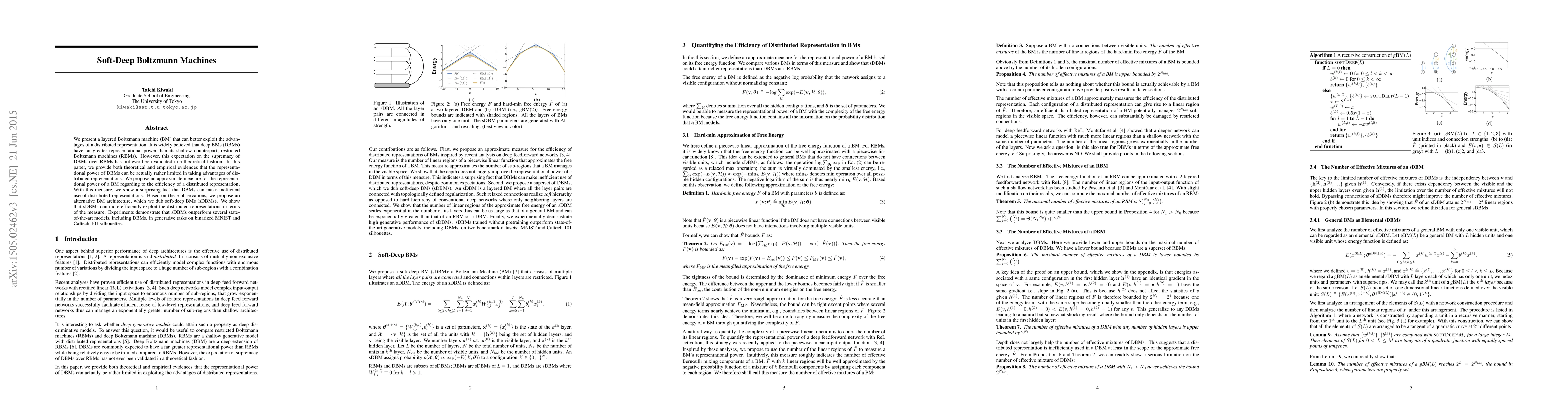 This paper introduces soft-deep Boltzmann Machines (sDBMs) as an alternative to deep Boltzmann Machines (DBMs), demonstrating that sDBMs more efficiently utilize distributed representations. Empirical results show that sDBMs outperform DBMs and other models on generative tasks.