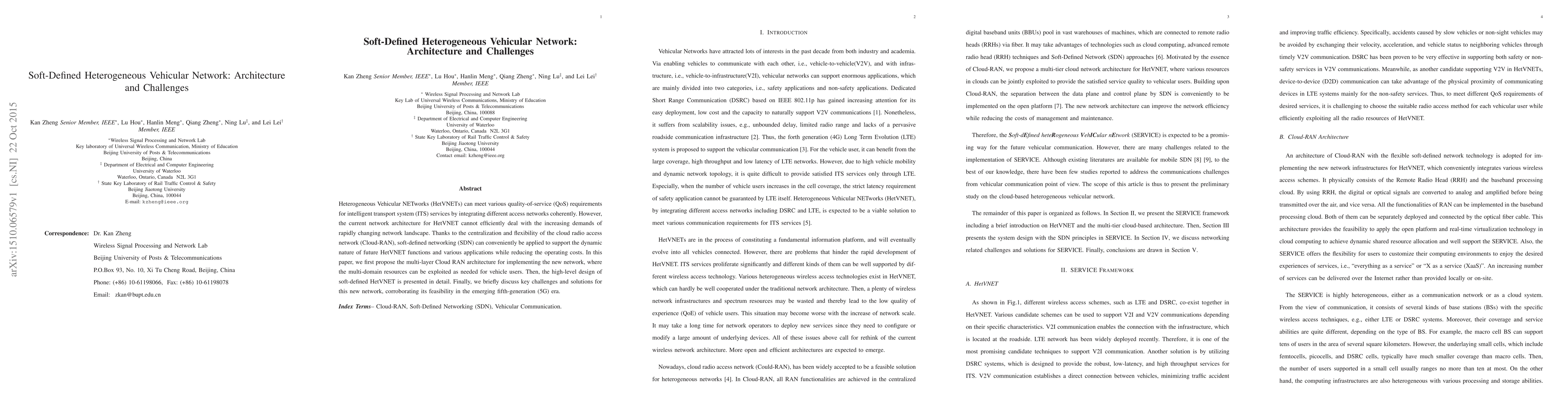 Researchers propose a cloud radio access network architecture to support soft-defined heterogeneous vehicular networks with dynamic functions and reduced operating costs. The new network design aims to efficiently meet various quality-of-service requirements for intelligent transport systems in the emerging 5G era.