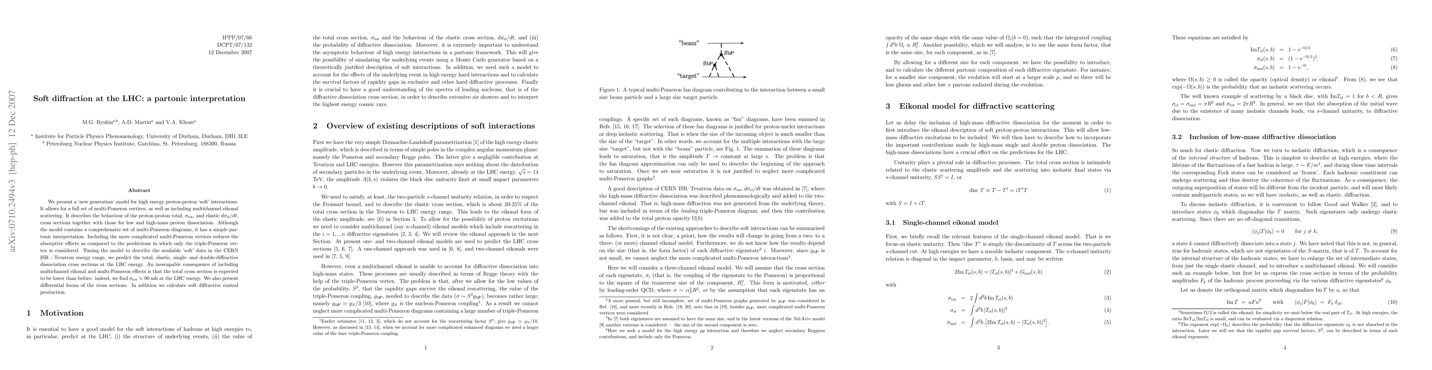 This paper introduces a new model for soft proton-proton interactions at high energies, incorporating multi-Pomeron vertices and multichannel eikonal scattering. The model predicts a lower total cross section at LHC energy, approximately 90 mb, and provides differential forms of the cross sections for various diffractive processes.