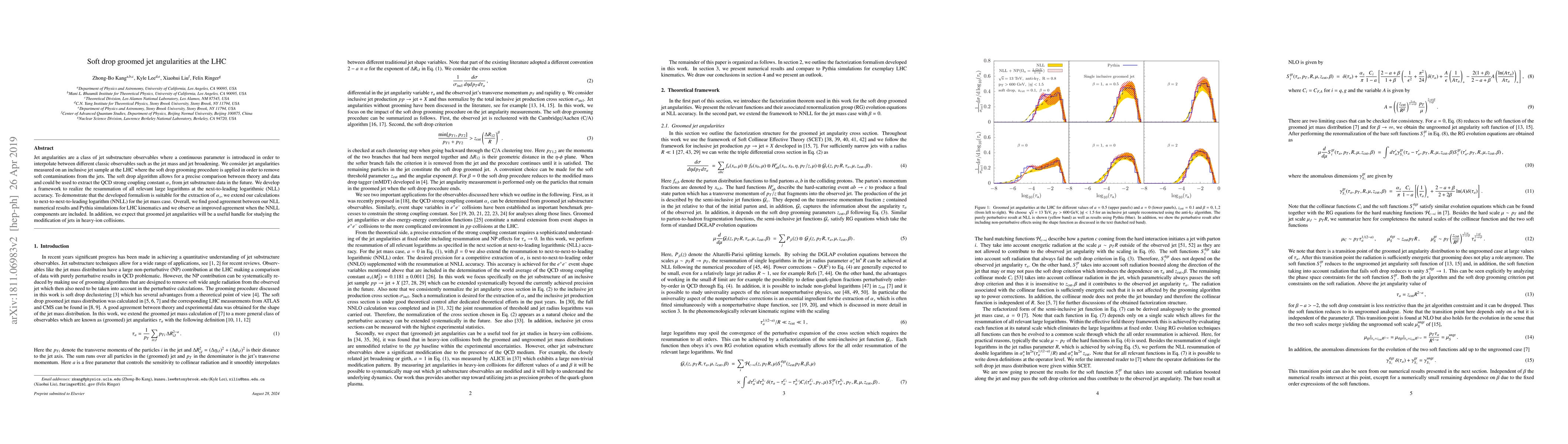 This paper develops a framework for measuring jet angularities using the soft drop grooming procedure at the LHC, achieving next-to-leading logarithmic accuracy. It demonstrates the potential of these groomed jet angularities for extracting the strong coupling constant $\alpha_s$ and shows improved agreement with simulations at next-to-next-to-leading logarithmic accuracy.