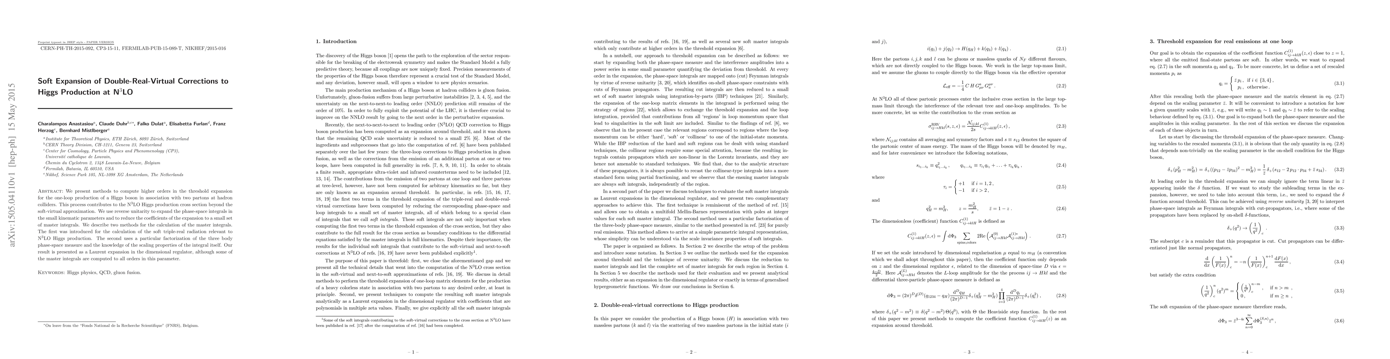 We present methods to compute higher orders in the threshold expansion for the one-loop production of a Higgs boson in association with two partons at hadron colliders. This process contributes to the N$^3$LO Higgs production cross section beyond the soft-virtual approximation. We use reverse unitarity to expand the phase-space integrals in the small kinematic parameters and to reduce the coefficients of the expansion to a small set of master integrals. We describe two methods for the calculation of the master integrals. The first was introduced for the calculation of the soft triple-real radiation relevant to N$^3$LO Higgs production. The second uses a particular factorization of the three body phase-space measure and the knowledge of the scaling properties of the integral itself. Our result is presented as a Laurent expansion in the dimensional regulator, although some of the master integrals are computed to all orders in this parameter.