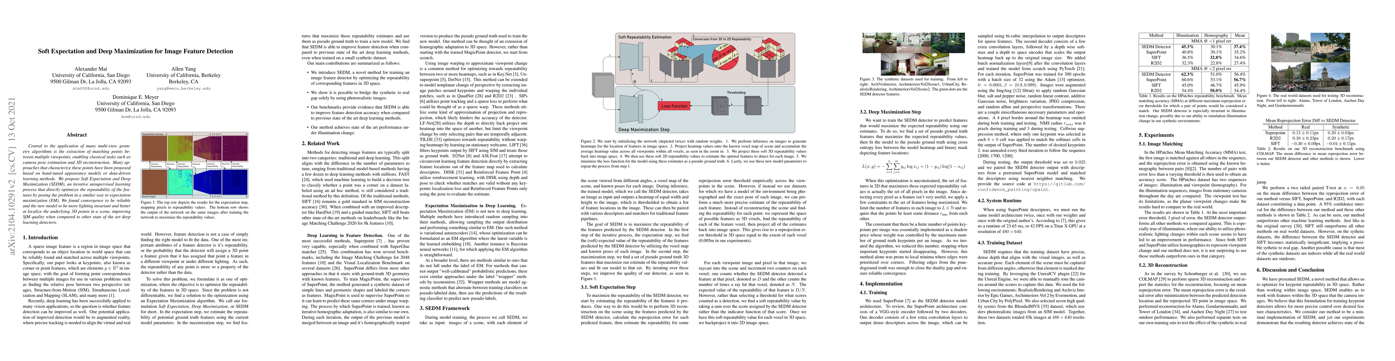 Central to the application of many multi-view geometry algorithms is the extraction of matching points between multiple viewpoints, enabling classical tasks such as camera pose estimation and 3D reconstruction. Many approaches that characterize these points have been proposed based on hand-tuned appearance models or data-driven learning methods. We propose Soft Expectation and Deep Maximization (SEDM), an iterative unsupervised learning process that directly optimizes the repeatability of the features by posing the problem in a similar way to expectation maximization (EM). We found convergence to be reliable and the new model to be more lighting invariant and better at localize the underlying 3D points in a scene, improving SfM quality when compared to other state of the art deep learning detectors.