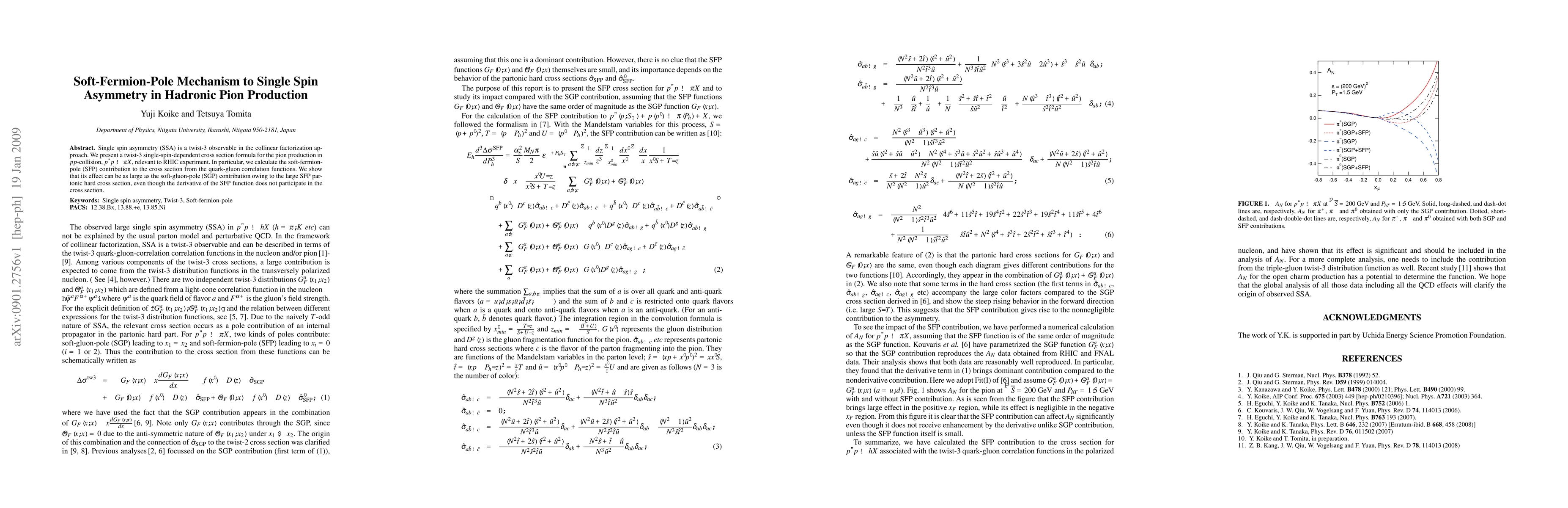 Researchers develop a formula for single spin asymmetry in hadronic pion production, showing that soft-fermion-pole contributions can rival those of soft-gluon-pole effects due to large hard cross sections.