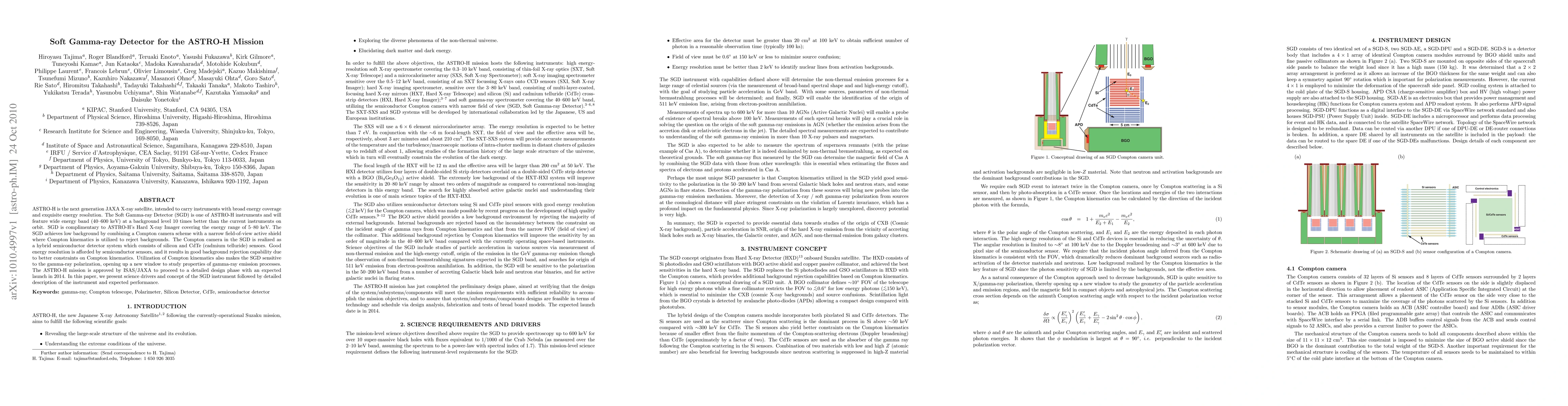 The Soft Gamma-ray Detector (SGD) on the ASTRO-H mission offers a wide energy range (40-600 keV) with significantly lower background levels than current instruments, utilizing a hybrid semiconductor detector system for enhanced energy resolution and background rejection. The SGD's design, combining a Compton camera scheme and active shielding, also enables studies of gamma-ray polarization.