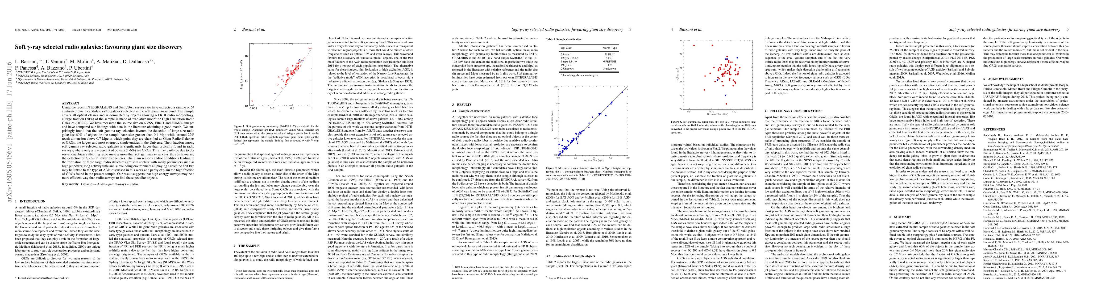 This study identifies a significant number of large size radio galaxies, termed Giant Radio Galaxies (GRGs), among soft gamma-ray selected radio galaxies, finding that 22% of these objects exceed 0.7 Mpc in size. The soft gamma-ray selection method appears to favor the detection of GRGs more than radio surveys, suggesting high energy surveys may be more effective in discovering these massive entities.