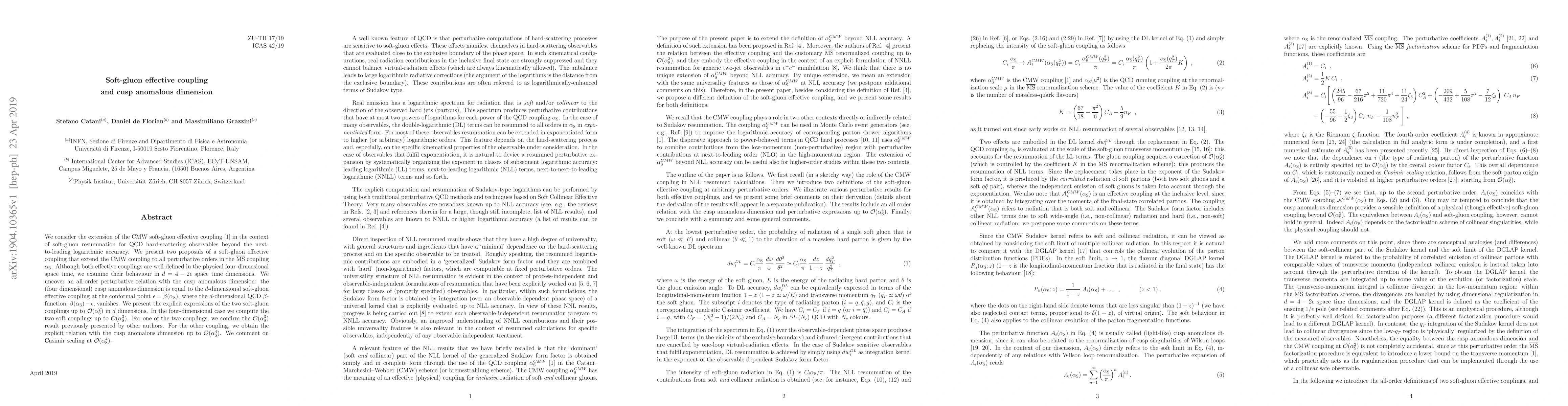 Researchers propose new soft-gluon effective couplings that extend the CMW coupling to all perturbative orders in QCD hard-scattering observables, revealing an all-order perturbative relation with the cusp anomalous dimension.