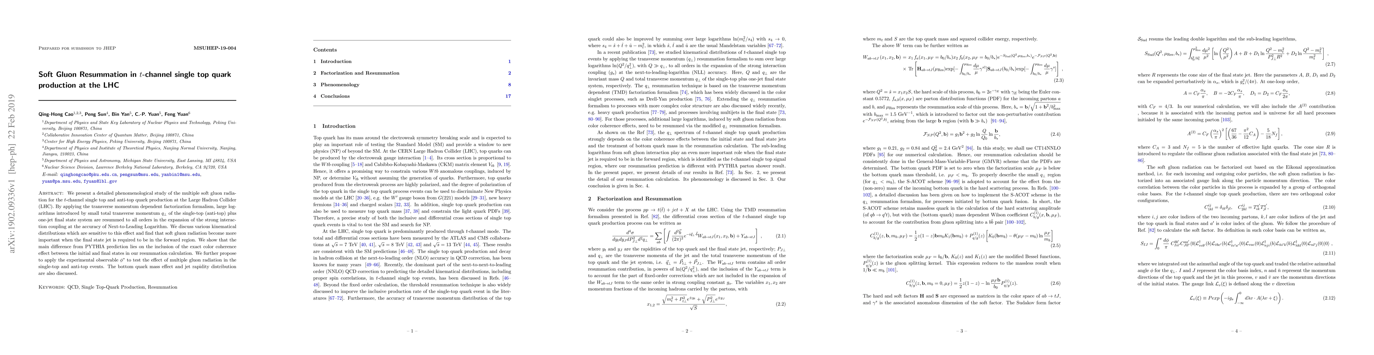 This paper presents a detailed study of soft gluon radiation in $t$-channel single top quark production at the LHC, applying transverse momentum dependent factorization to resum large logarithms to Next-to-Leading Logarithm accuracy. It highlights the importance of soft gluon radiation in forward jets and proposes the use of $\phi^*$ for experimental observation.