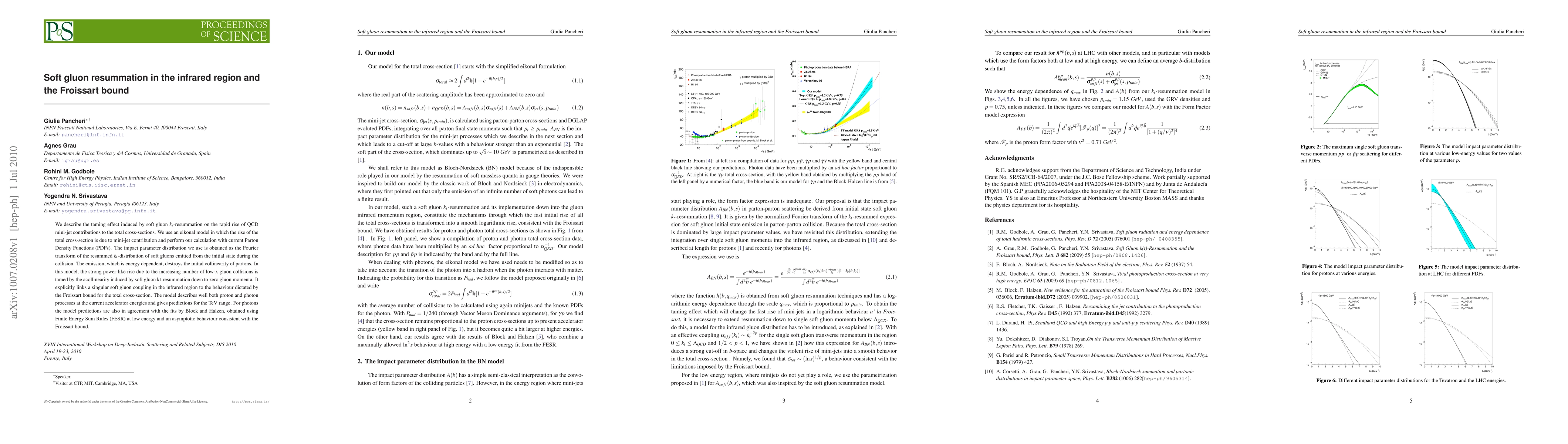 This paper examines the effect of soft gluon $k_t$-resummation on the rise of QCD mini-jet contributions to total cross-sections, demonstrating how it tames the strong power-like increase due to low-x gluon collisions. The model links infrared soft gluon behavior to the Froissart bound, providing accurate predictions for proton and photon processes at current and future accelerator energies.