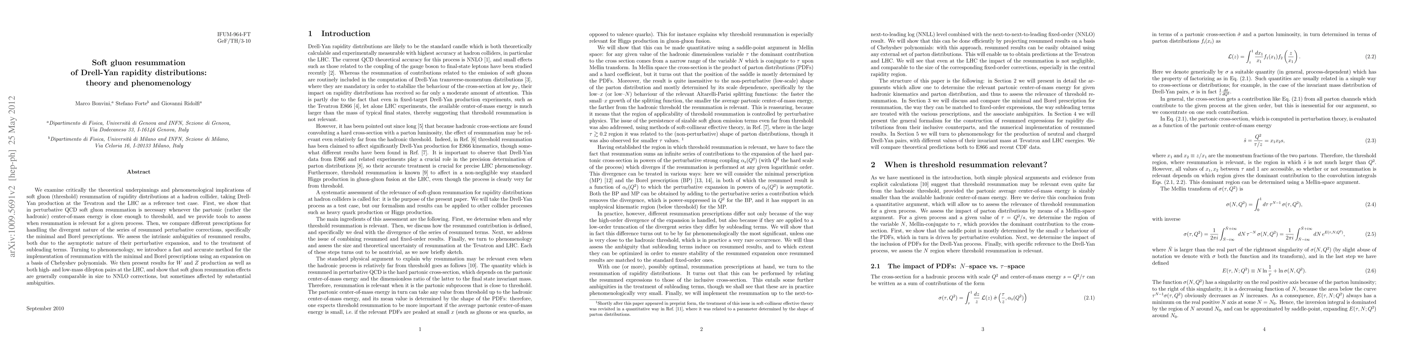 This paper critically analyzes the necessity and implications of soft gluon resummation for Drell-Yan rapidity distributions in perturbative QCD, particularly at the Tevatron and LHC. It introduces methods for implementing resummation and presents results for W and Z production, highlighting the significant but sometimes ambiguous effects of resummation compared to NNLO corrections.