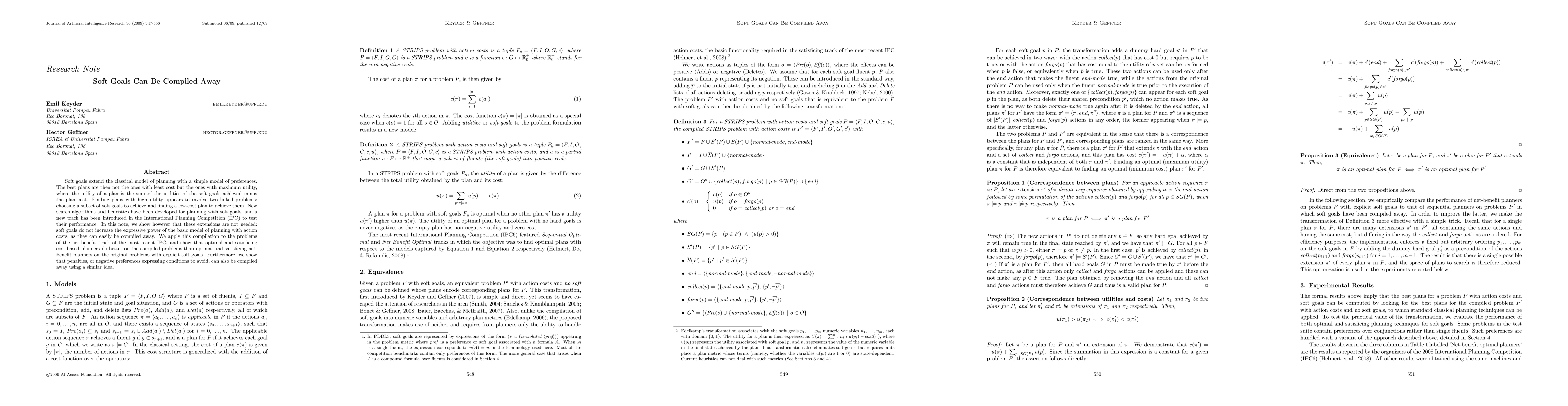 This paper demonstrates that soft goals, which introduce preferences into classical planning, can be effectively "compiled away" by transforming them into equivalent cost-based planning problems. The study shows that cost-based planners perform better on the transformed problems compared to planners designed specifically for soft goals.