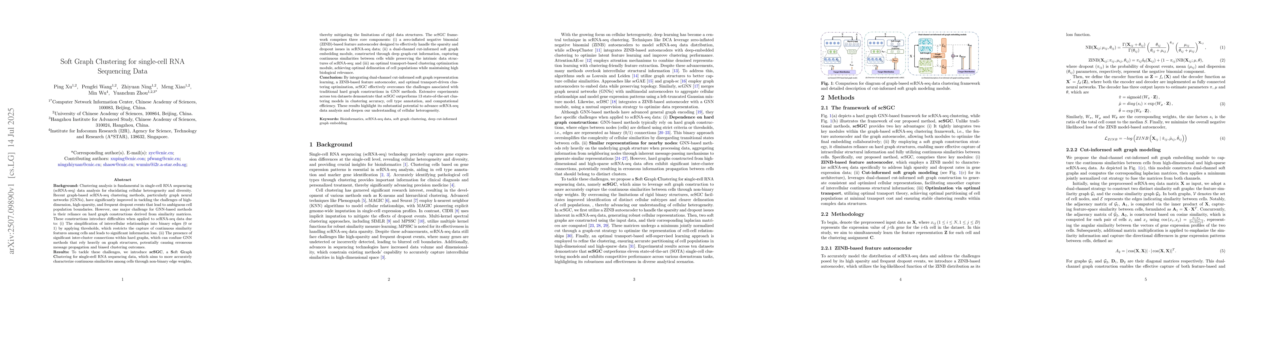 Clustering analysis is fundamental in single-cell RNA sequencing (scRNA-seq) data analysis for elucidating cellular heterogeneity and diversity. Recent graph-based scRNA-seq clustering methods, particularly graph neural networks (GNNs), have significantly improved in tackling the challenges of high-dimension, high-sparsity, and frequent dropout events that lead to ambiguous cell population boundaries. However, their reliance on hard graph constructions derived from thresholded similarity matrices presents challenges:(i) The simplification of intercellular relationships into binary edges (0 or 1) by applying thresholds, which restricts the capture of continuous similarity features among cells and leads to significant information loss.(ii) The presence of significant inter-cluster connections within hard graphs, which can confuse GNN methods that rely heavily on graph structures, potentially causing erroneous message propagation and biased clustering outcomes. To tackle these challenges, we introduce scSGC, a Soft Graph Clustering for single-cell RNA sequencing data, which aims to more accurately characterize continuous similarities among cells through non-binary edge weights, thereby mitigating the limitations of rigid data structures. The scSGC framework comprises three core components: (i) a zero-inflated negative binomial (ZINB)-based feature autoencoder; (ii) a dual-channel cut-informed soft graph embedding module; and (iii) an optimal transport-based clustering optimization module. Extensive experiments across ten datasets demonstrate that scSGC outperforms 13 state-of-the-art clustering models in clustering accuracy, cell type annotation, and computational efficiency. These results highlight its substantial potential to advance scRNA-seq data analysis and deepen our understanding of cellular heterogeneity.