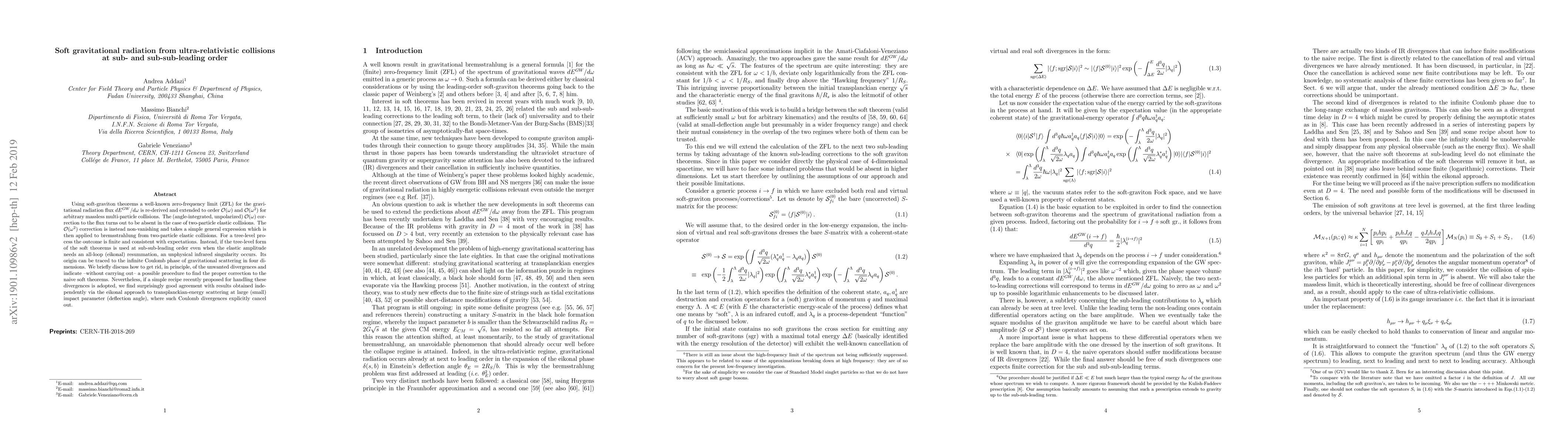 Using soft-graviton theorems a well-known zero-frequency limit (ZFL) for the gravitational radiation flux $dE^{GW}/d \omega$ is re-derived and extended to order ${{\cal O}}(\omega)$ and ${{\cal O}}(\omega^2)$ for arbitrary massless multi-particle collisions. The (angle-integrated, unpolarized) ${{\cal O}}(\omega)$ correction to the flux turns out to be absent in the case of two-particle elastic collisions. The ${{\cal O}}(\omega^2)$ correction is instead non-vanishing and takes a simple general expression which is then applied to bremsstrahlung from two-particle elastic collisions. For a tree-level process the outcome is finite and consistent with expectations. Instead, if the tree-level form of the soft theorems is used at sub-sub-leading order even when the elastic amplitude needs an all-loop (eikonal) resummation, an unphysical infrared singularity occurs. Its origin can be traced to the infinite Coulomb phase of gravitational scattering in four dimensions. We briefly discuss how to get rid, in principle, of the unwanted divergences and indicate --without carrying out-- a possible procedure to find the proper correction to the naive soft theorems. Nevertheless, if a simple recipe recently proposed for handling these divergences is adopted, we find surprisingly good agreement with results obtained independently via the eikonal approach to transplanckian-energy scattering at large (small) impact parameter (deflection angle), where such Coulomb divergences explicitly cancel out.