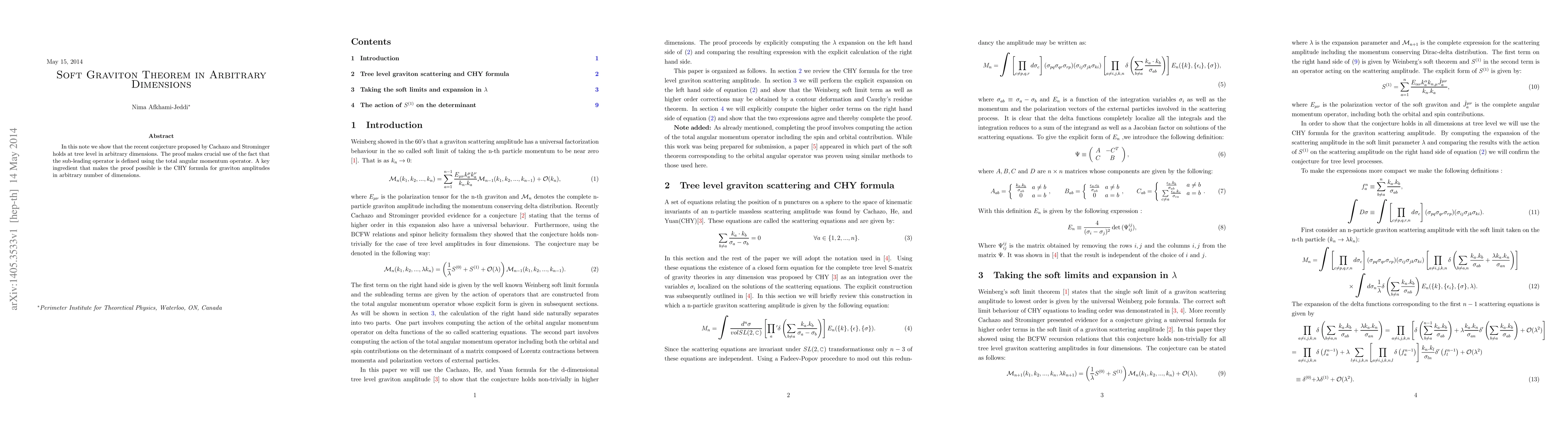 Summary: This paper proves the conjecture by Cachazo and Strominger regarding the soft graviton theorem at tree level in any dimension, leveraging the CHY formula and the total angular momentum operator for crucial calculations.