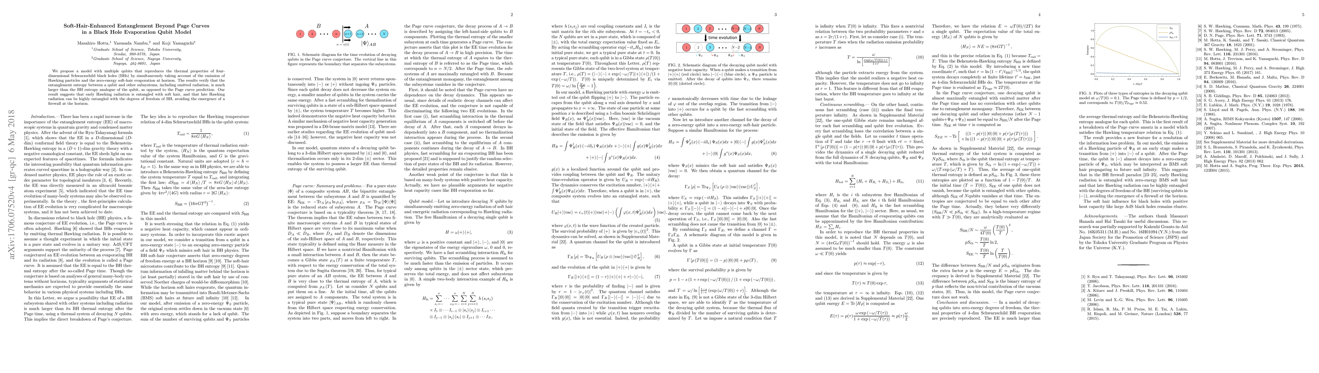 We propose a model with multiple qubits that reproduces the thermal properties of 4-dimensional (4-dim) Schwarzschild black holes (BHs) by simultaneously taking account of the emission of Hawking particles and the zero-energy soft hair evaporation at horizon. The results verify that the entanglement entropy between a qubit and other subsystems, including emitted radiation, is much larger than the BH entropy analogue of the qubit, as opposed to the Page curve prediction. Our result suggests that early Hawking radiation is entangled with soft hair, and that late Hawking radiation can be highly entangled with the degrees of freedom of BH, avoiding the emergence of a firewall at the horizon.