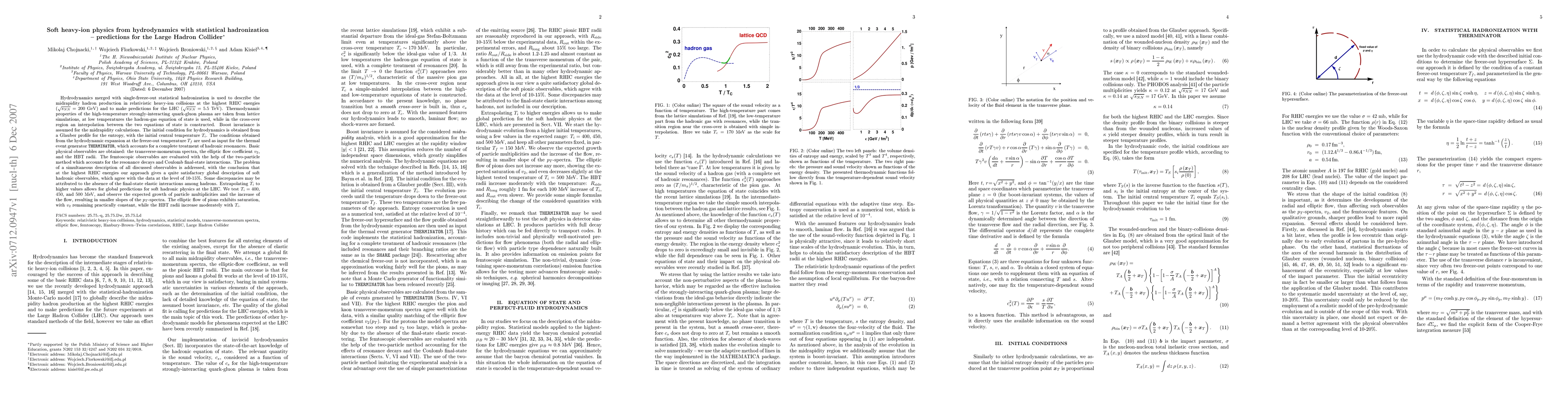 Hydrodynamics merged with single-freeze-out statistical hadronization is used to describe the midrapidity hadron production in relativistic heavy-ion collisions at the highest RHIC energies and to make predictions for the LHC. Thermodynamic properties of the quark-gluon plasma are taken from lattice simulations, at low temperatures the hadron-gas equation of state is used, while in the cross-over region an interpolation between the two equations of state is constructed. The initial condition for hydrodynamics is obtained from a Glauber profile for the entropy, with the initial central temperature Ti. The conditions obtained from the hydrodynamic expansion at the freeze-out temperature Tf are used as input for the thermal event generator THERMINATOR. Basic physical observables are obtained: the transverse-momentum spectra, the elliptic flow coefficient v2, and the HBT radii. The femtoscopic observables are evaluated with the help of the two-particle method which accounts for the resonance decays and Coulomb final-state interactions. The problem of a simultaneous description of all discussed observables is addressed, with the conclusion that at the highest RHIC energies our approach gives a quite satisfactory global description of soft hadronic observables. Some discrepancies may be attributed to the absence of the final-state elastic interactions among hadrons. Extrapolating Ti to higher values allows for global predictions for soft hadronic physics at the LHC. We test Ti=400, 450, and 500 MeV, and observe the expected growth of particle multiplicities and the increase of the flow, resulting in smaller slopes of the pT-spectra. The elliptic flow of pions exhibits saturation, with v2 remaining practically constant, while the HBT radii increase moderately with Ti.