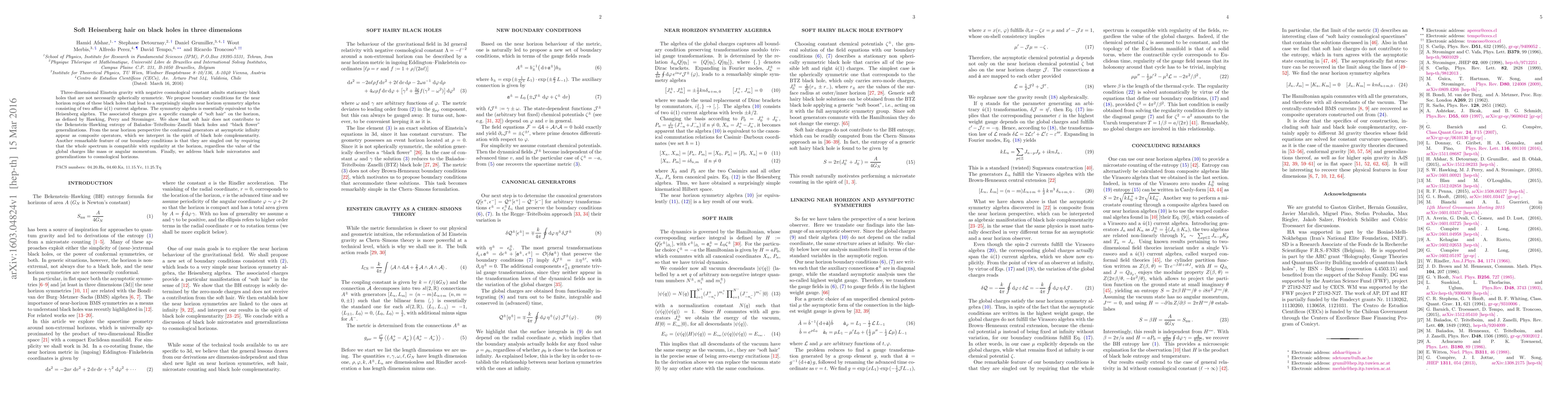 This paper proposes boundary conditions for non-spherically symmetric black holes in three-dimensional gravity, revealing a simple near-horizon symmetry algebra akin to the Heisenberg algebra, which defines "soft hair" on the horizon. It demonstrates that this soft hair does not affect the Bekenstein-Hawking entropy.