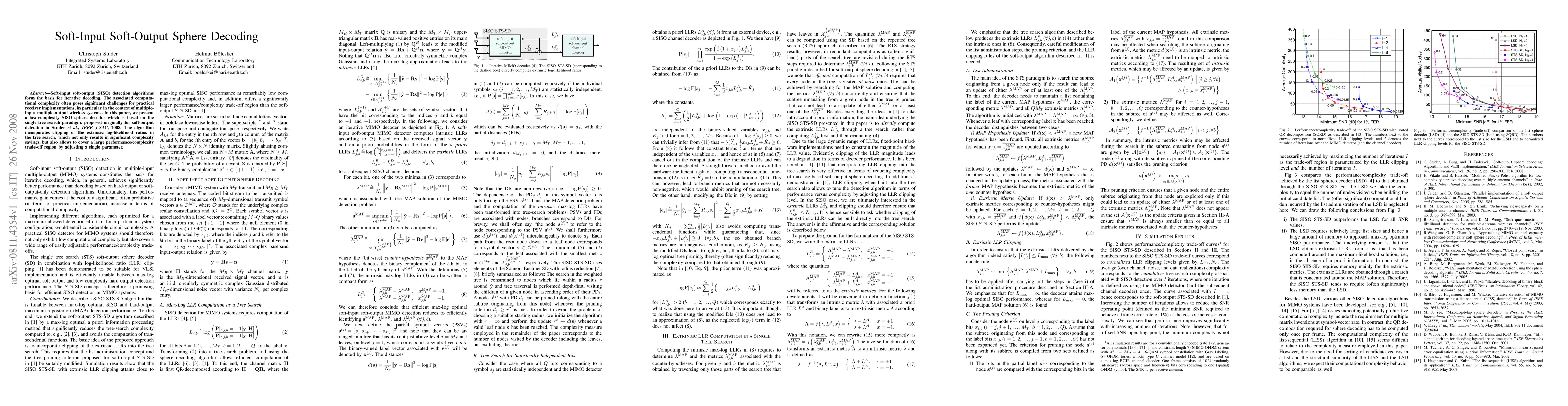 Soft-input soft-output (SISO) detection algorithms form the basis for iterative decoding. The associated computational complexity often poses significant challenges for practical receiver implementations, in particular in the context of multiple-input multiple-output wireless systems. In this paper, we present a low-complexity SISO sphere decoder which is based on the single tree search paradigm, proposed originally for soft-output detection in Studer et al., IEEE J-SAC, 2008. The algorithm incorporates clipping of the extrinsic log-likelihood ratios in the tree search, which not only results in significant complexity savings, but also allows to cover a large performance/complexity trade-off region by adjusting a single parameter.