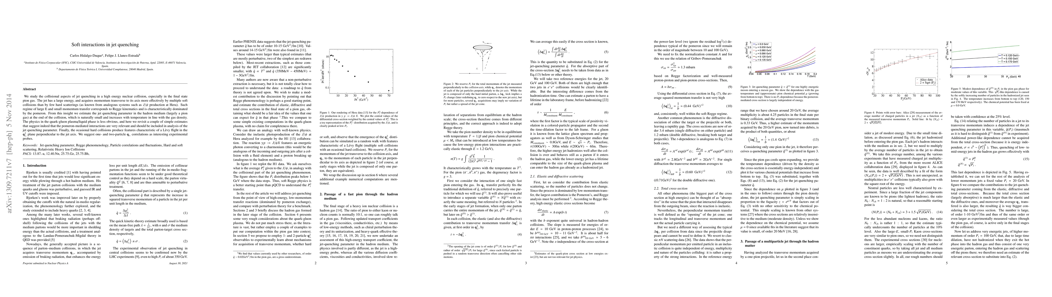 We study the collisional aspects of jet quenching in a high energy nuclear collision, especially in the final state pion gas. The jet has a large energy, and acquires momentum transverse to its axis more effectively by multiple soft collisions than by few hard scatterings (as known from analogous systems such as J/\psi production at Hera). Such regime of large E and small momentum transfer corresponds to Regge kinematics and is characteristically dominated by the pomeron. From this insight we estimate the jet quenching parameter in the hadron medium (largely a pion gas) at the end of the collision, which is naturally small and increases with temperature in line with the gas density. The physics in the quark-gluon plasma/liquid phase is less obvious, and here we revisit a couple of simple estimates that suggest indeed that the pomeron-mediated interactions are very relevant and should be included in analysis of the jet quenching parameter. Finally, the ocasional hard collisions produce features characteristic of a L\`evy flight in the q_perp^2 plane perpendicular to the jet axis. We suggest one- and two-particle q_perp correlations as interesting experimental probes.