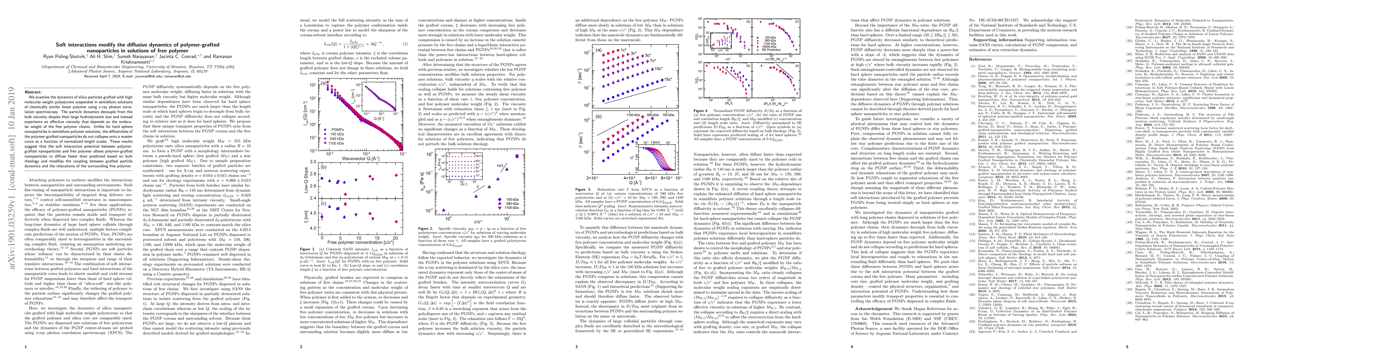 This study investigates the diffusive dynamics of silica nanoparticles grafted with polystyrene in semidilute solutions of similar linear polymers, revealing that soft interactions lead to faster nanoparticle diffusion than predicted by bulk rheology. The effective viscosity experienced by these particles depends on the molecular weight of the free polymer, indicating modified coupling between nanoparticle dynamics and the surrounding polymer relaxations.