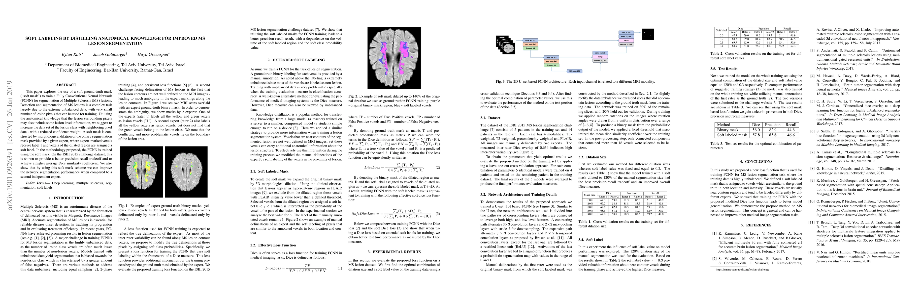 This paper proposes using soft labeling through anatomical knowledge to enhance the segmentation of Multiple Sclerosis lesions by a Fully Convolutional Neural Network. The method improves performance by incorporating neighboring pixel data with reduced confidence weights, achieving better precision-recall and higher Dice similarity compared to traditional methods.