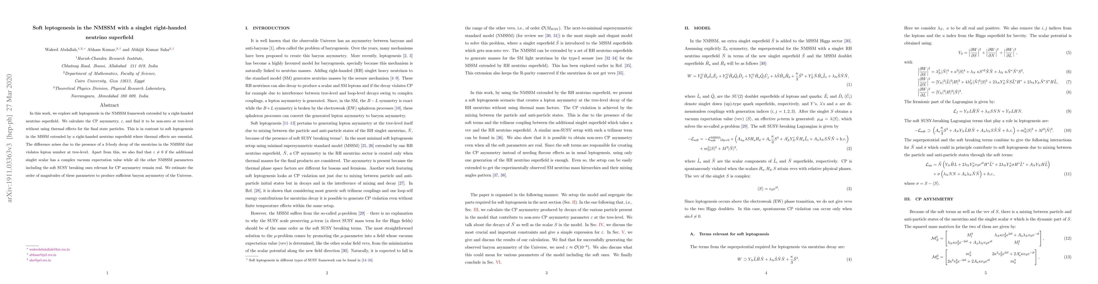 This paper investigates soft leptogenesis in the Next Minimal Supersymmetric Standard Model (NMSSM) augmented with a right-handed neutrino superfield, finding non-zero CP asymmetry at tree-level without thermal effects, unlike in MSSM. The NMSSM's unique 3-body sneutrino decay and complex vacuum expectation values of the singlet scalar contribute to this result.