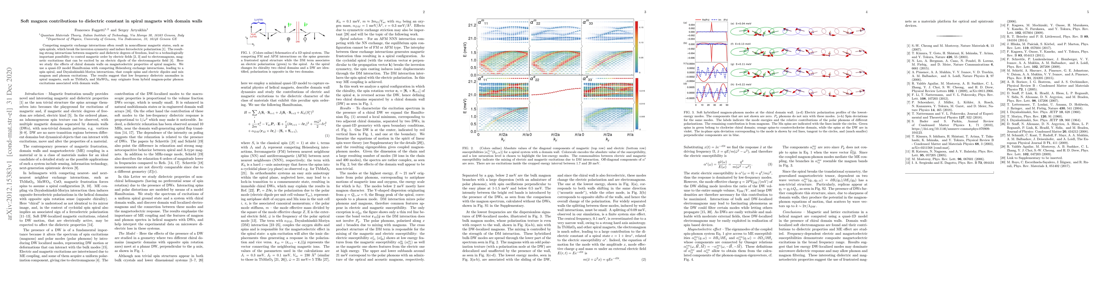 This paper investigates how chiral domain walls in spiral magnets affect their magnetoelectric properties, revealing that low-frequency dielectric anomalies in materials like TbMnO3 and MnWO4 arise from hybrid magnon-polar phonon excitations linked to these domain walls. The study employs a quasi-1D model Hamiltonian to explore these interactions.