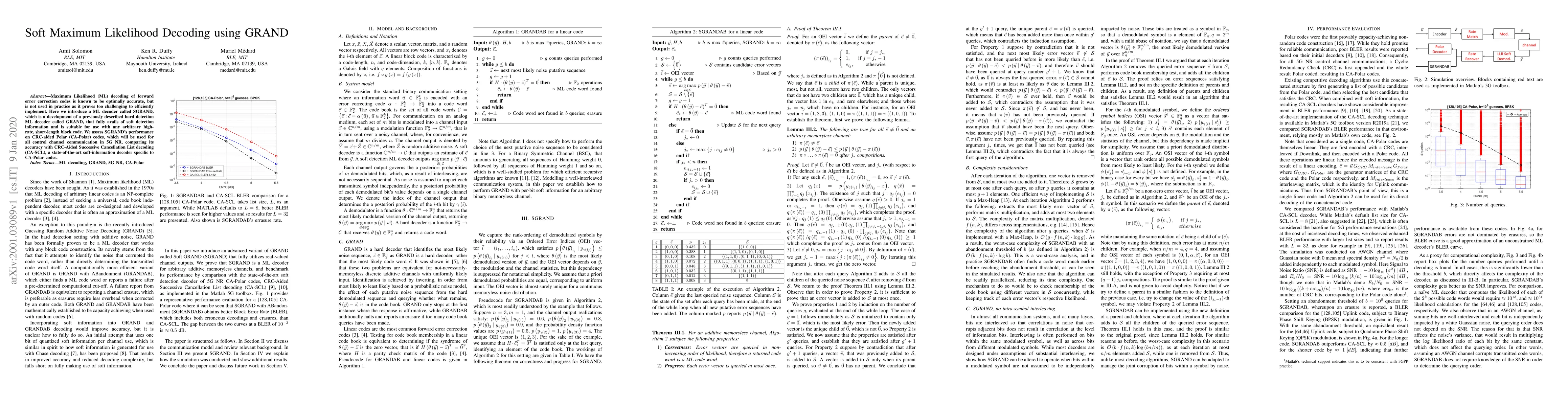 SGRAND is a new soft detection ML decoder that uses guessing random additive noise decoding with soft detection symbol reliability information.