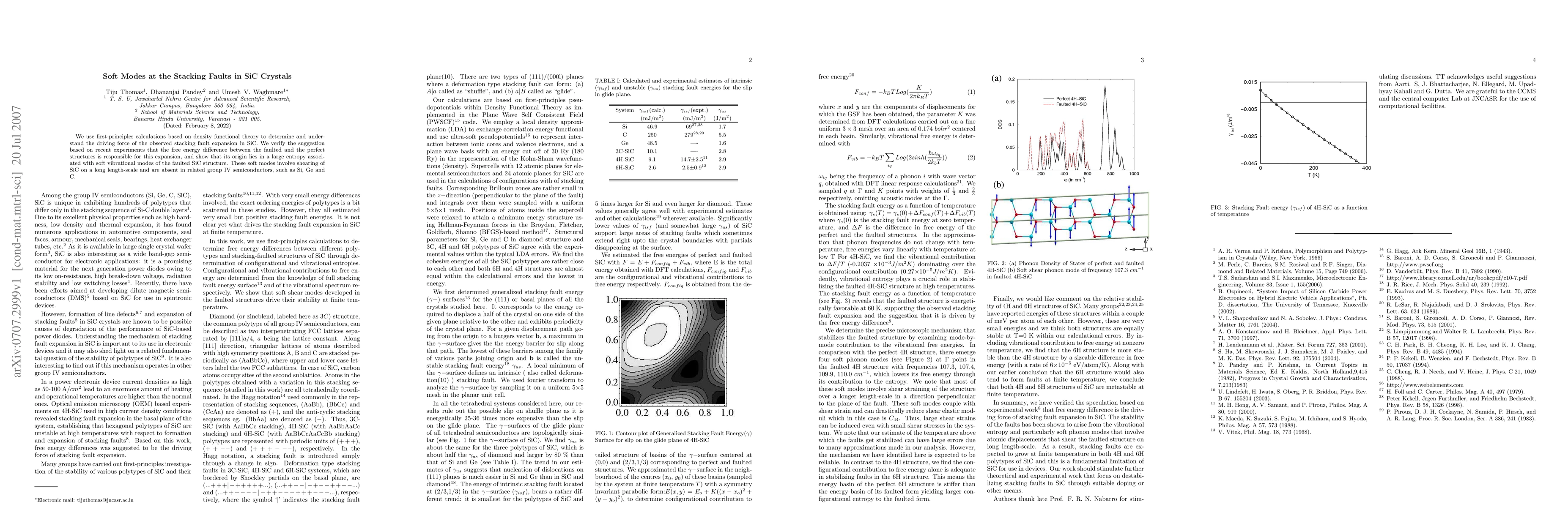 We use first-principles calculations based on density functional theory to determine and understand the driving force of the observed stacking fault expansion in SiC. We verify the suggestion based on recent experiments that the free energy difference between the faulted and the perfect structures is responsible for this expansion, and show that its origin lies in a large entropy associated with soft vibrational modes of the faulted SiC structure. These soft modes involve shearing of SiC on a long length-scale and are absent in related group IV semiconductors, such as Si, Ge and C.