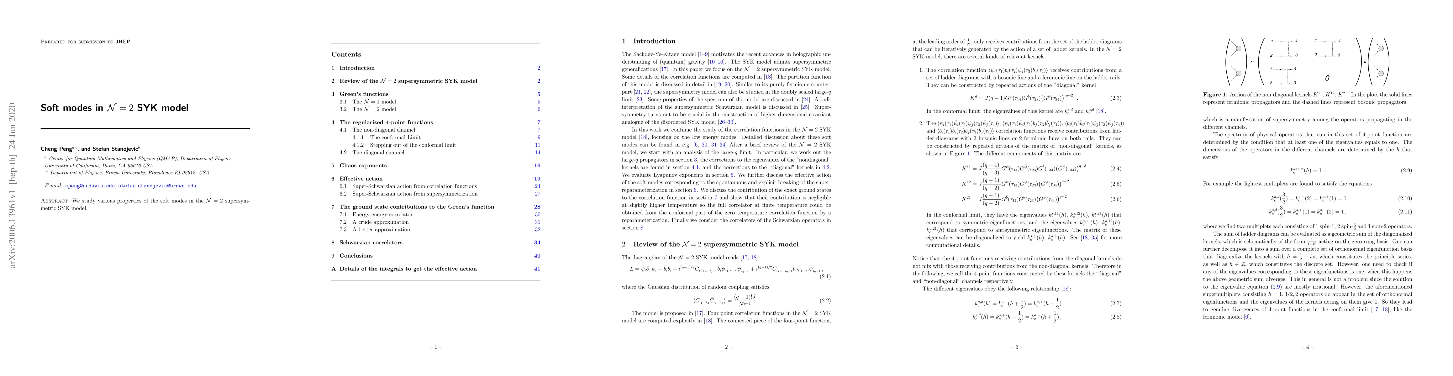Summary: This paper investigates the characteristics and properties of soft modes within the $\mathcal{N}=2$ supersymmetric SYK model, contributing to the understanding of its low-energy behavior.