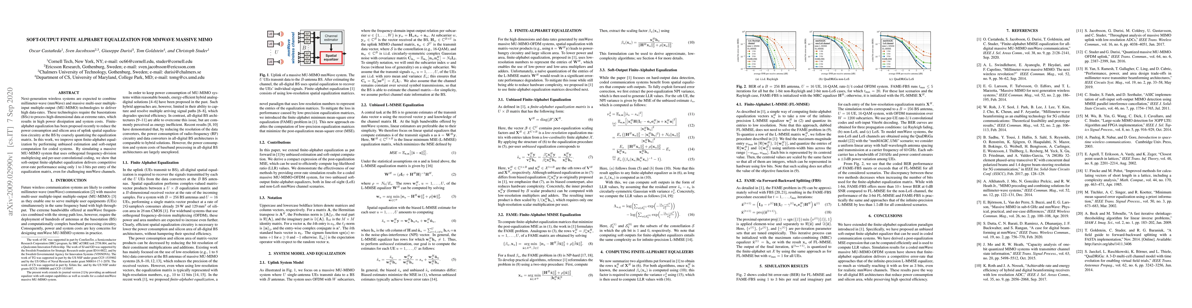 This paper proposes an improved finite-alphabet equalization method for mmWave massive MIMO systems, achieving competitive error-rate performance with reduced power consumption and silicon area by using soft-output computation and unbiased estimation. The method uses only 1 to 3 bits per entry of the equalization matrix.