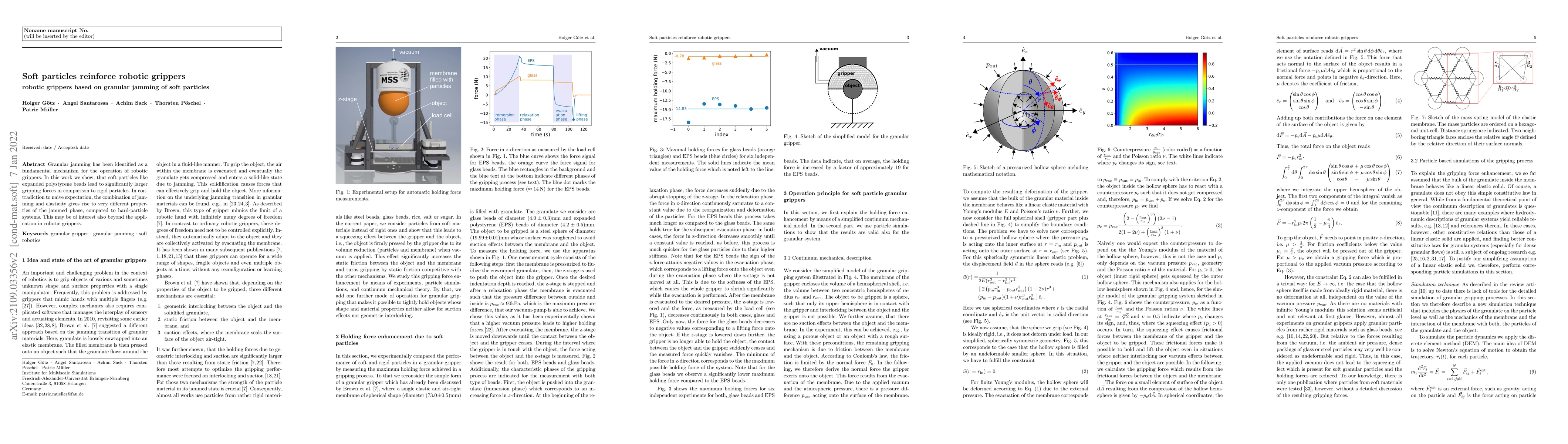 Summary: This research demonstrates that robotic grippers utilizing granular jamming of soft particles, such as expanded polystyrene beads, generate significantly larger gripping forces than those using rigid particles. The combination of jamming and elasticity results in unique properties in the jammed phase, offering potential applications beyond robotic grippers.